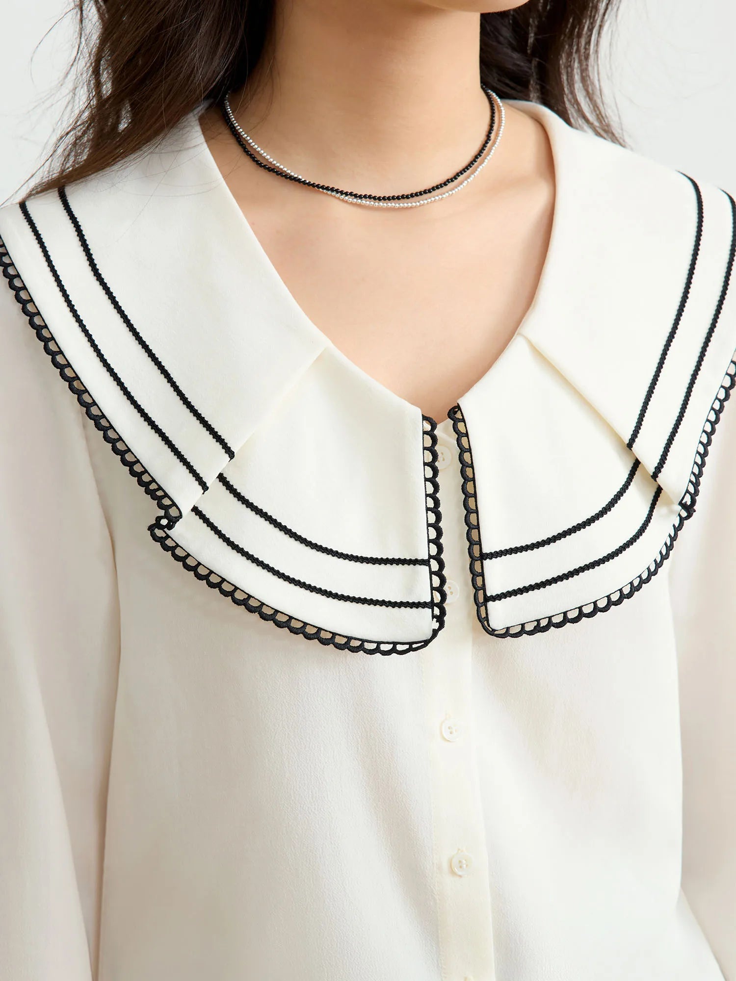 Feminine Damenbluse mit Kragen und gewelltem Detail – schmeichelhaftes Shirt für Büro und Freizeit