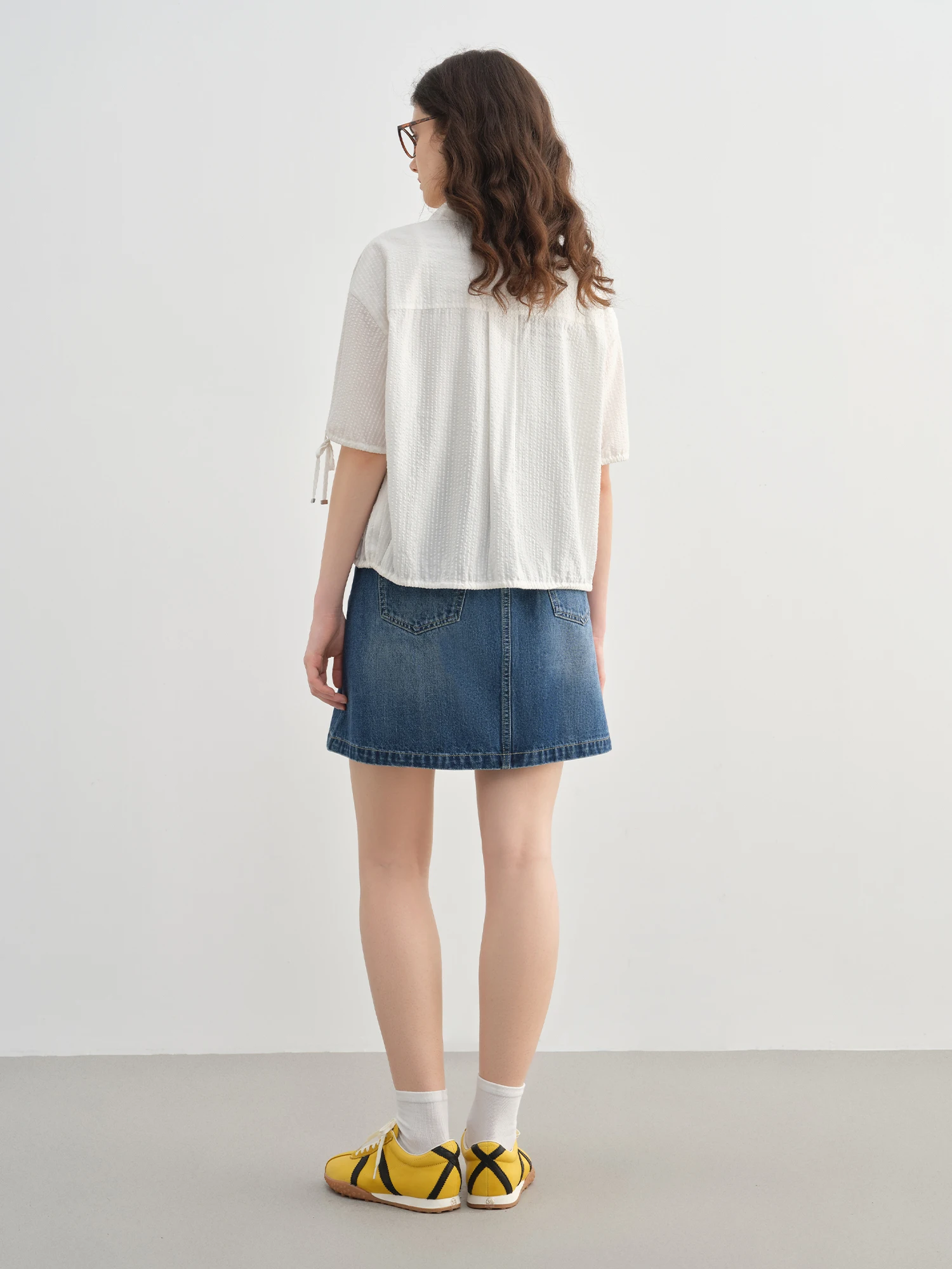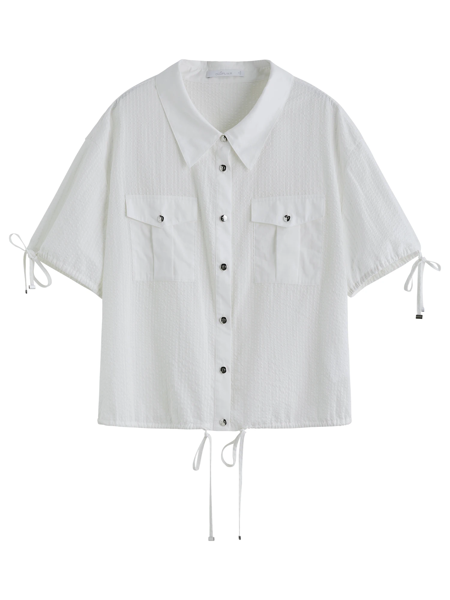 Französisch inspiriertes Damenhemd im minimalistischen Stil – figurbetontes, sommerliches Oberteil in zartem Rosa