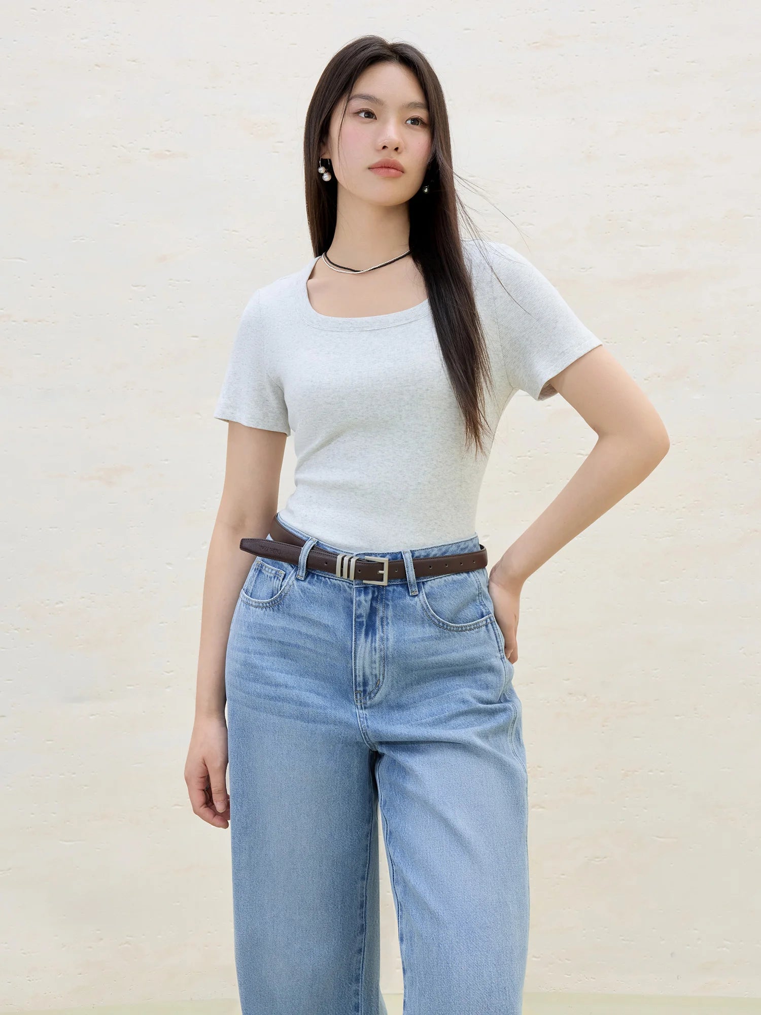 3D-Blumen Baumwollshirt in Übergröße mit Rundhalsausschnitt – Schlankes, besticktes Design für Büro und Alltag