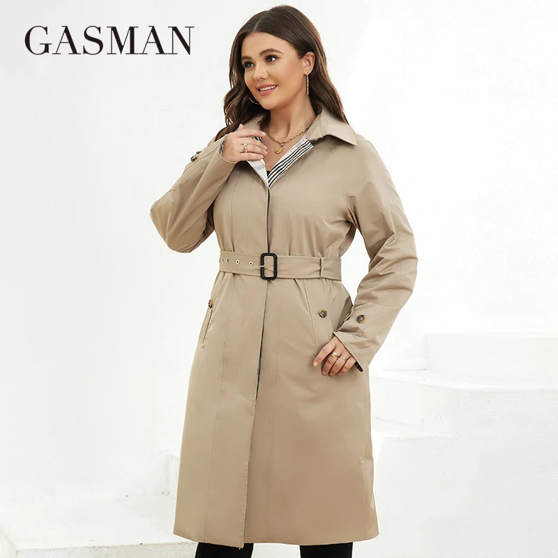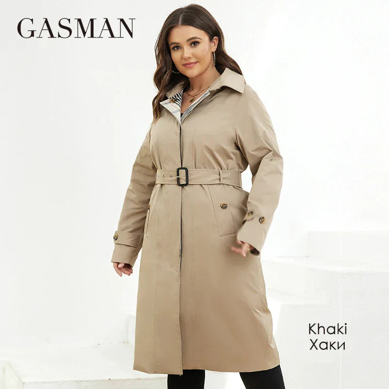 Mit durchdachten Details wie Taschen, die Platz für wichtige Kleinigkeiten bieten, und einem schlichten, zeitlosen Design ist diese Jacke perfekt für Damen, die Wert auf Qualität, Komfort und Stil legen. Tragen Sie sie zu casual Looks oder eleganten Outfits – sie ist stets eine gute Wahl. Warten Sie nicht länger, sichern Sie sich jetzt die GASMAN Autumn Women’s Trench Coat Plus Size LW-22910 und setzen Sie ein modisches Statement in der kalten Jahreszeit!