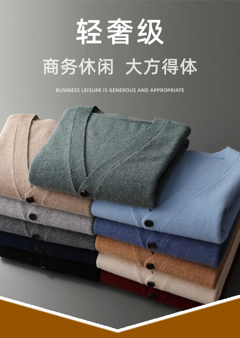 Herren Strickjacke Frühling und Herbst Basic Strick pullover aus reiner Wolle Herren große lose V-Ausschnitt Mantel reine Farbe Freizeit jacke Top