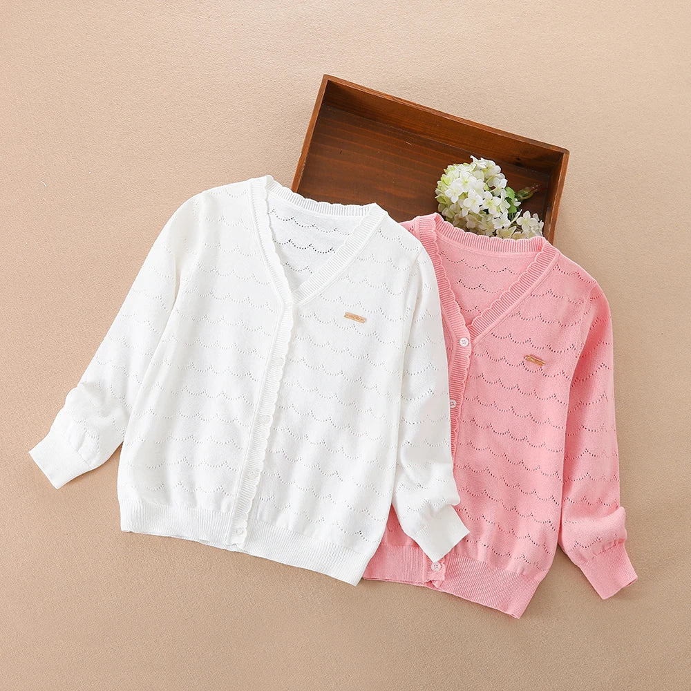 Kinder Sommerkleid ung Mädchen leichte Strickjacke Pullover Knöpfe Langarm lässig gestrickt dünne atmungsaktive Outwear