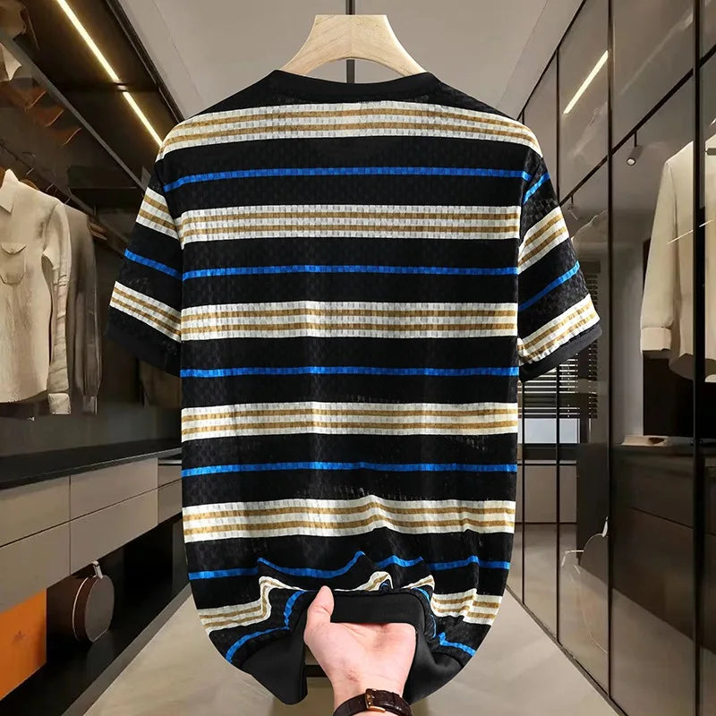 Herren T-Shirt aus elastischer Eis-Seide mit klassischen Streifen und kurzen Ärmeln