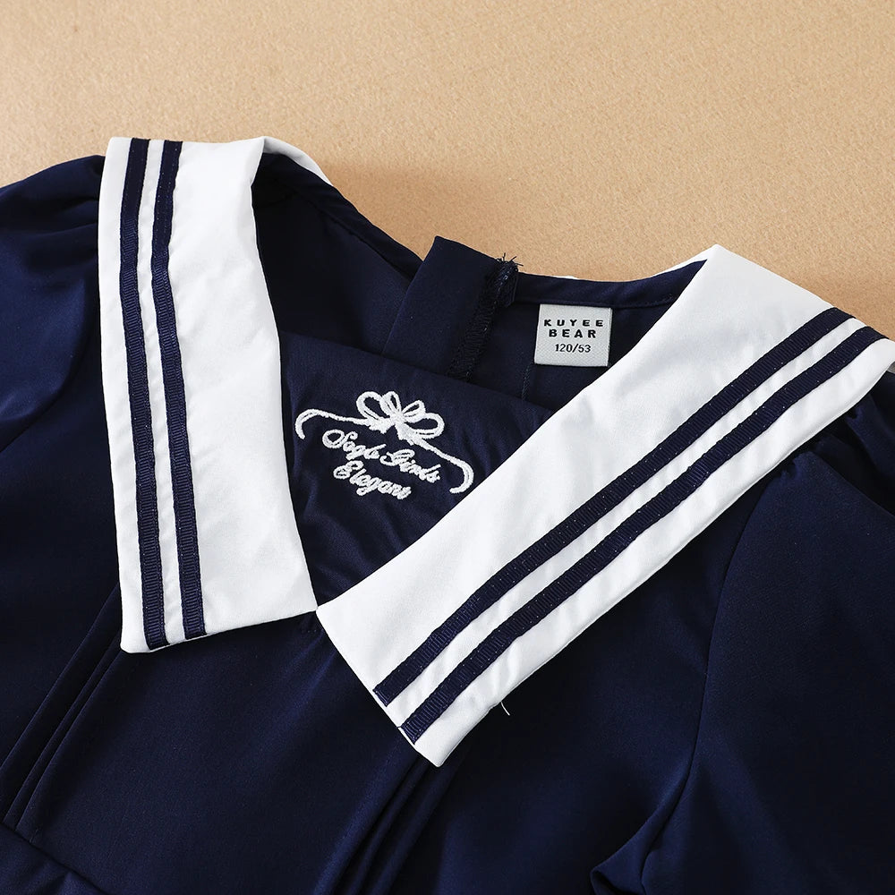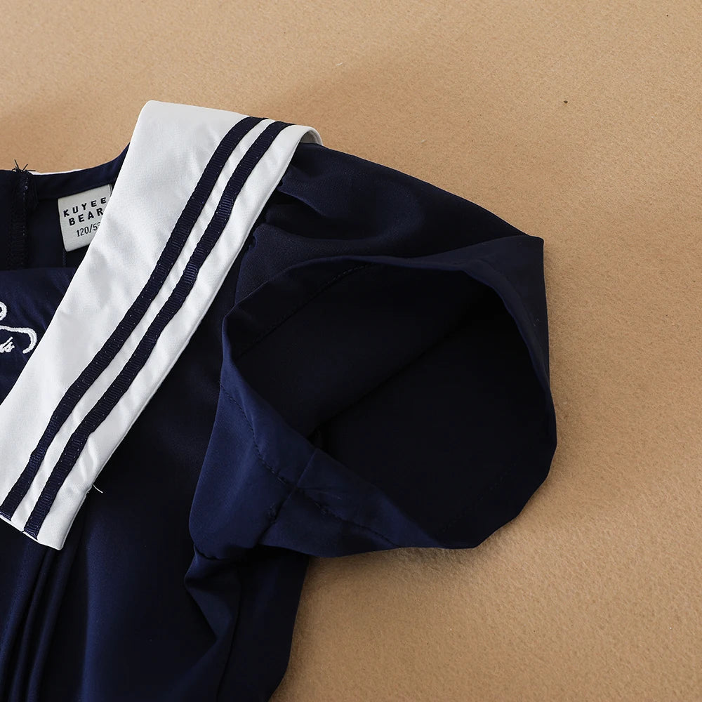 Kurzärmliges Sommerkleid für Mädchen für 5–12 Jahre, adrette Kleider mit gestreiftem Kragen im College-Stil, Kleidung für den Schulanfang