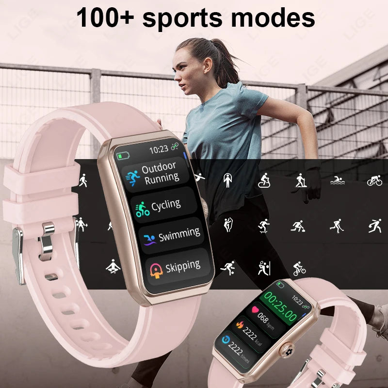 LIGE 1,47" 3D gebogener Bildschirm BT Anruf Musik Smart Watch IP68 wasserdicht Herzfrequenz Blutsauerstoff Frauen Smartwatch 100+ Zifferblatt