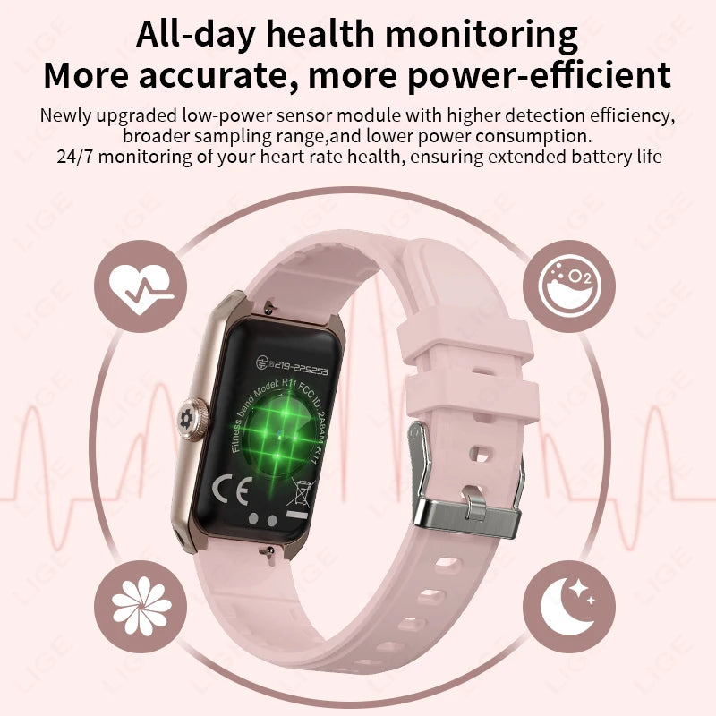 LIGE 1,47 Zoll 3D-gebogener Bildschirm BT Anruf Musik Smart Uhr IP68 Wasserdicht Herzfrequenz Blutsauerstoff Frauen Smartwatch 100+ Uhr Gesicht"