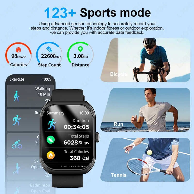 LIGE 2.01 "3D Gebogen Bildschirm Mode Smart Uhr Männer Herzfrequenz Sport Wasserdichte Bluetooth Anruf Frauen Smartwatch Für Android IOS"