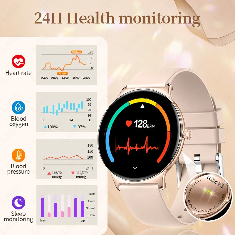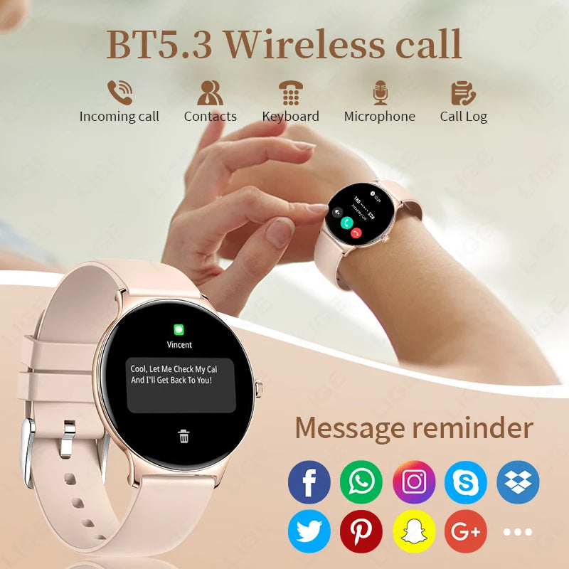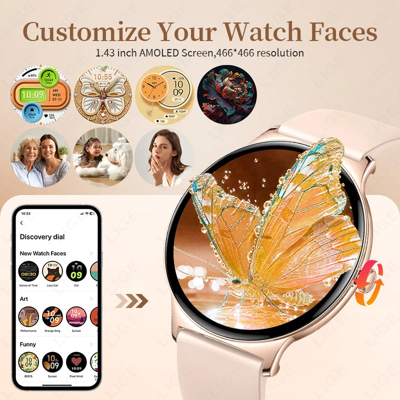 LIGE 2024 1,43" HD AMOLED Smart Watch DAMEN Herzfrequenz Blutsauerstoffmonitor Damen Gesundheit Smartwatch FÜR Xiaomi IOS Damen Geschenk
