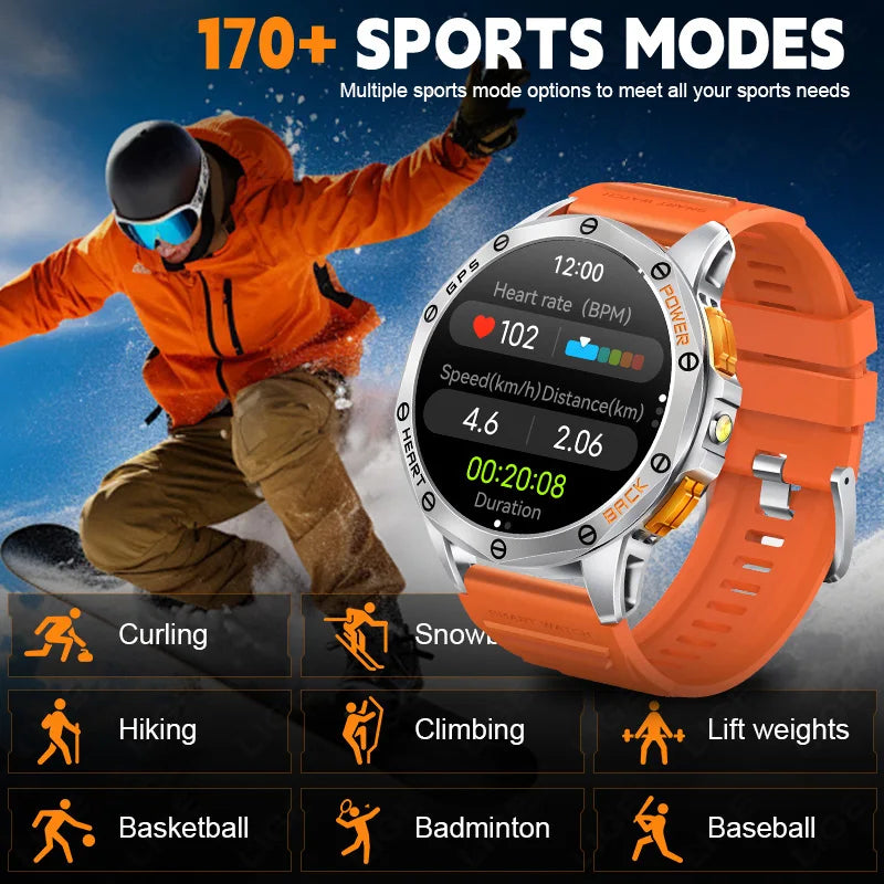 LIGE 2025 Neue Outdoor GPS Smart Uhr Männer 1,43 "AMOLED 530 mAh Batterie Militär LED Kompass Taschenlampe 100 + Sport Smartwatch Mann"