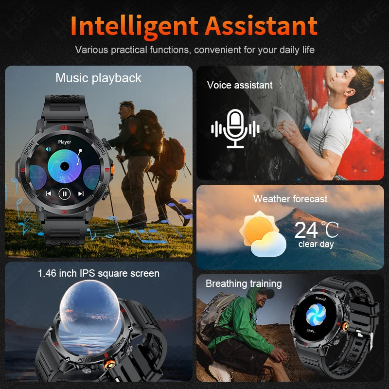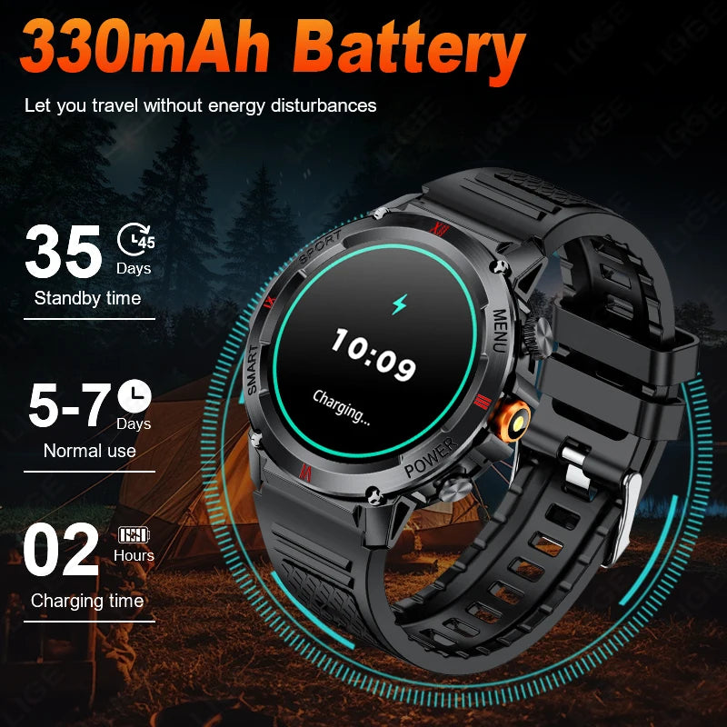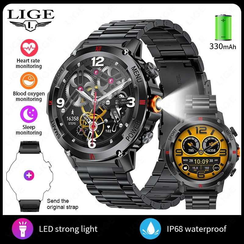 LIGE 2025 Neue Outdoor Smartwatch LED Taschenlampe Männer IP68 Wasserdichte Bluetooth Anruf Sport Fitness Track Smart Uhr Für Xiaomi