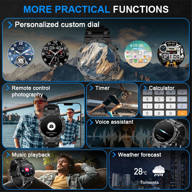 LIGE 2025 Neue Taschenlampe Smartwatch Wasserdicht 100+ Sport Herzfrequenz Blutsauerstoff BT Anruf Outdoor Smart Uhr Für Android iOS