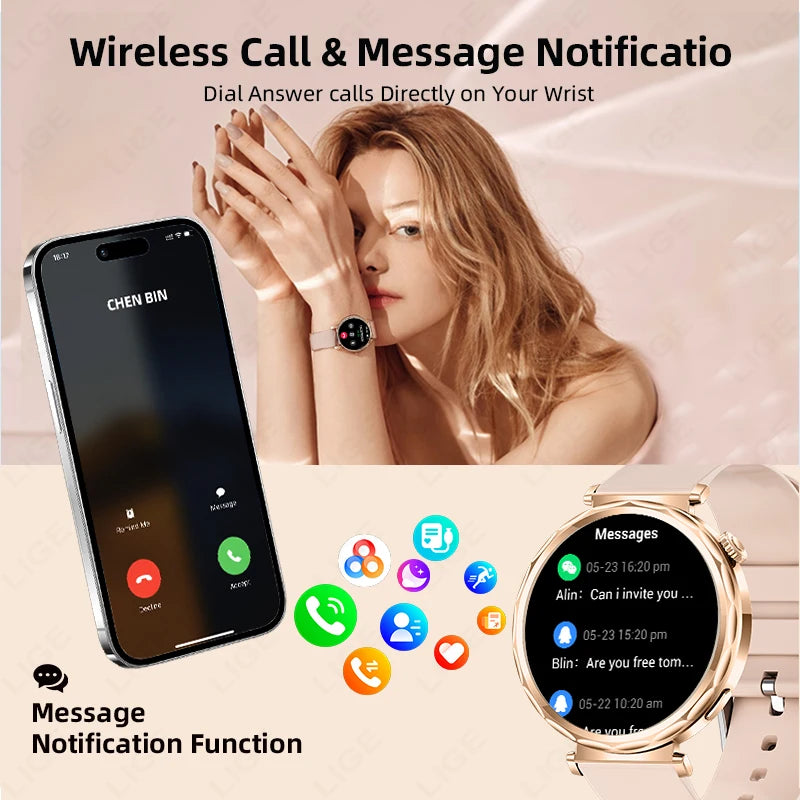 LIGE 2025 Smart Uhr Damen Voll Touchscreen Sport Fitness Uhr IP68 Wasserdicht Bluetooth Für Android iOS Smartwatch Weiblich