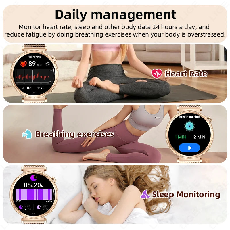 LIGE 2025 Ultradünne Damen-Smartwatch, 1,6 Zoll, HD, immer Zeitanzeige, BT-Anruf, Herzfrequenz, weibliche Menstruationszeitraum, Tracking-Smartwatch“