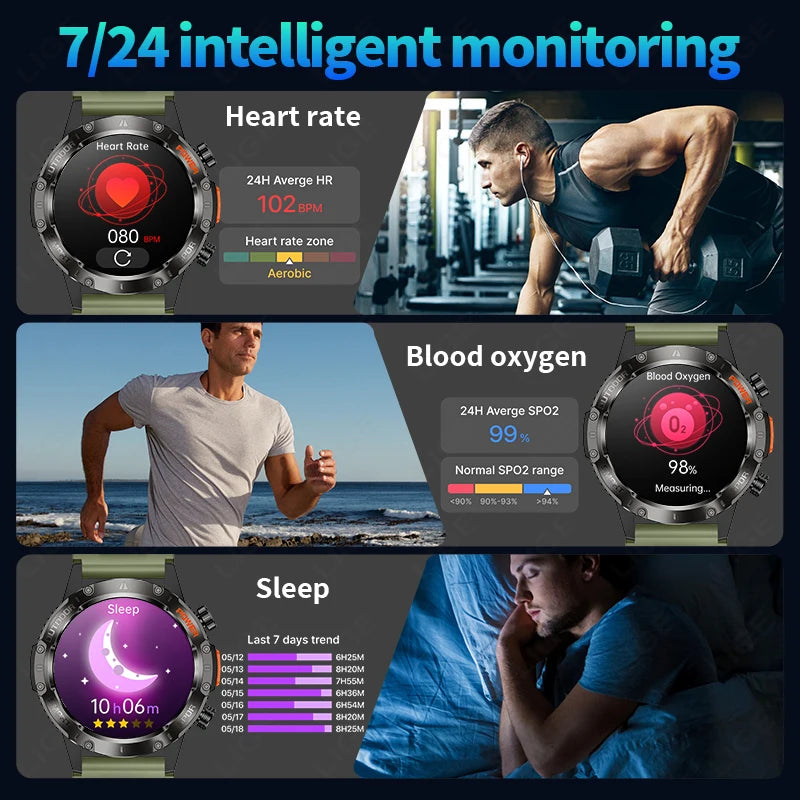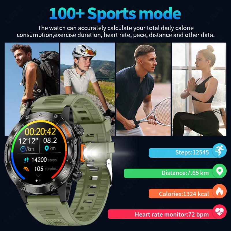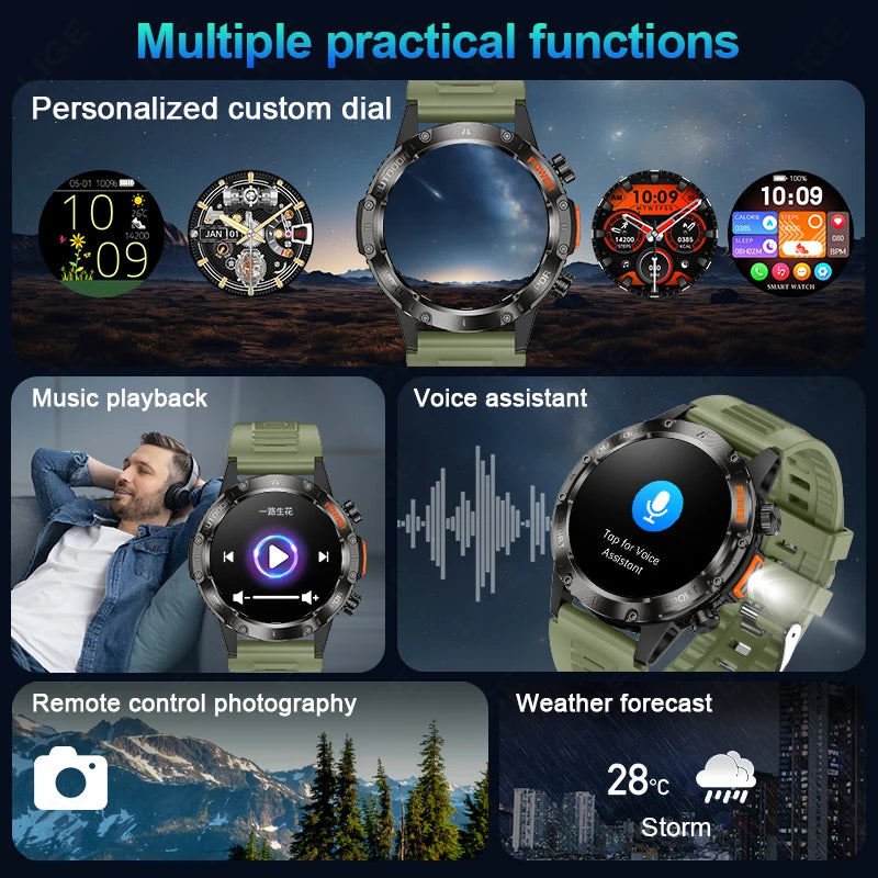 Diese innovative Männer Smartwatch im Outdoor-Design verbindet Funktionalität mit modernem Stil. Sie ist perfekt für aktive Erwachsene, die ihre Fitness verfolgen und gleichzeitig stilvoll aussehen möchten. Mit Bluetooth-Konnektivität und präziser Herzfrequenzmessung ist diese Smartwatch ein unverzichtbares Gadget für jeden Outdoor-Enthusiasten.