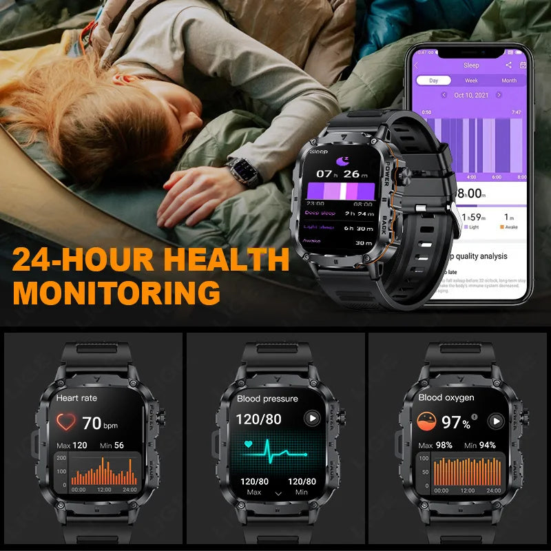 LIGE IP68 Wasserdichte Militär Smart Uhr Männer 1,95 "HD Fitness Tracker Sport Smartwatch Bluetooth Anruf Herzfrequenz Blutdruck