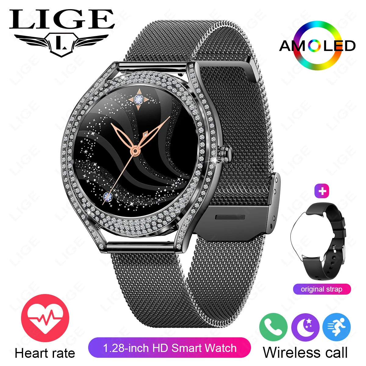 LIGE Neue Frauen Smart Uhr 1,28 Zoll Sport Fitness Armband BT HD Anrufen Uhr Wasserdichte Diamant Fall Mode Smartwatch 2025