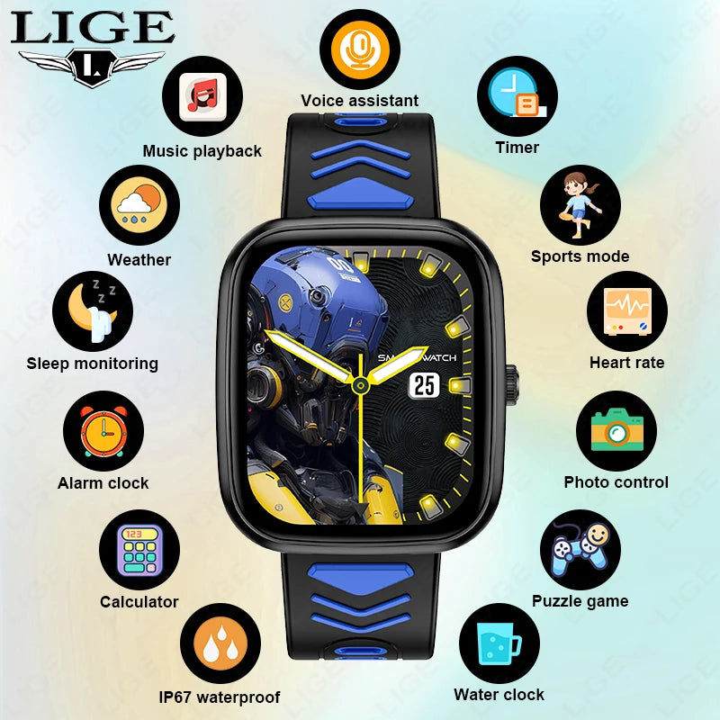 LIGE Neue Kind Smart Uhr Kinder Anruf Gesundheit Monitor Wasserdichte Smartwatch Wecker Student Uhren Kinder Jungen Mädchen Geschenk