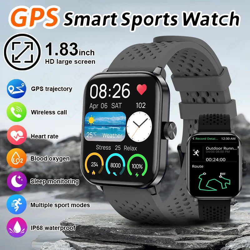 LIGE Neue Outdoor-Sport-GPS-Smartwatch für Herren, 1,83 Zoll, HD-Bildschirm, Telefonanrufe, Gesundheit, IP68, wasserdicht, für Herren, Smartwatch 2025.