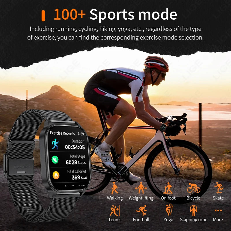 LIGE New Smartwatch Men's Rugged Military Bluetooth Call Sport Heart Rate IP68 Waterproof Outdoor Smart Watches With Flashlight