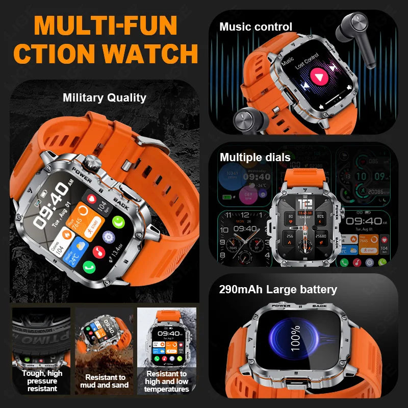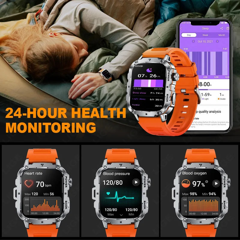 LIGE Outdoor Militär Sport Smart Uhr Männer Frauen Fitness Track Herzfrequenz Blut Sauerstoff Wasserdicht BT Anruf 1,95-Zoll Smartwatch