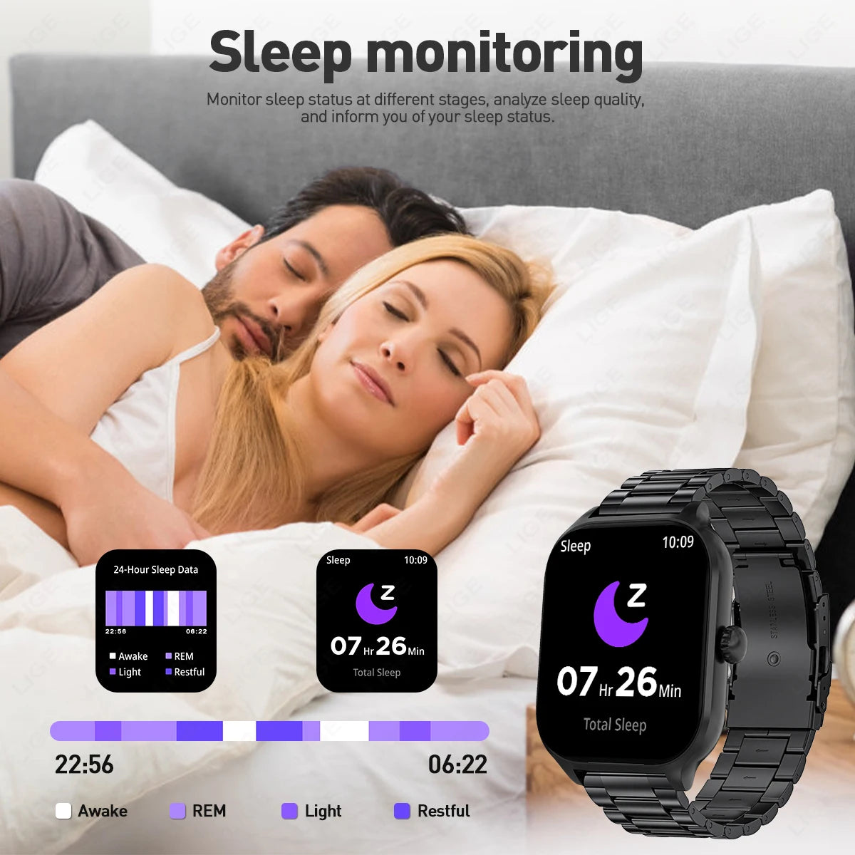 LIGE Smart Watch 2,01" HD-Bildschirm Bluetooth Sprachanruf Multi-Sportmodi Herzfrequenz-Schlafüberwachung Smartwatch für Männer Frauen