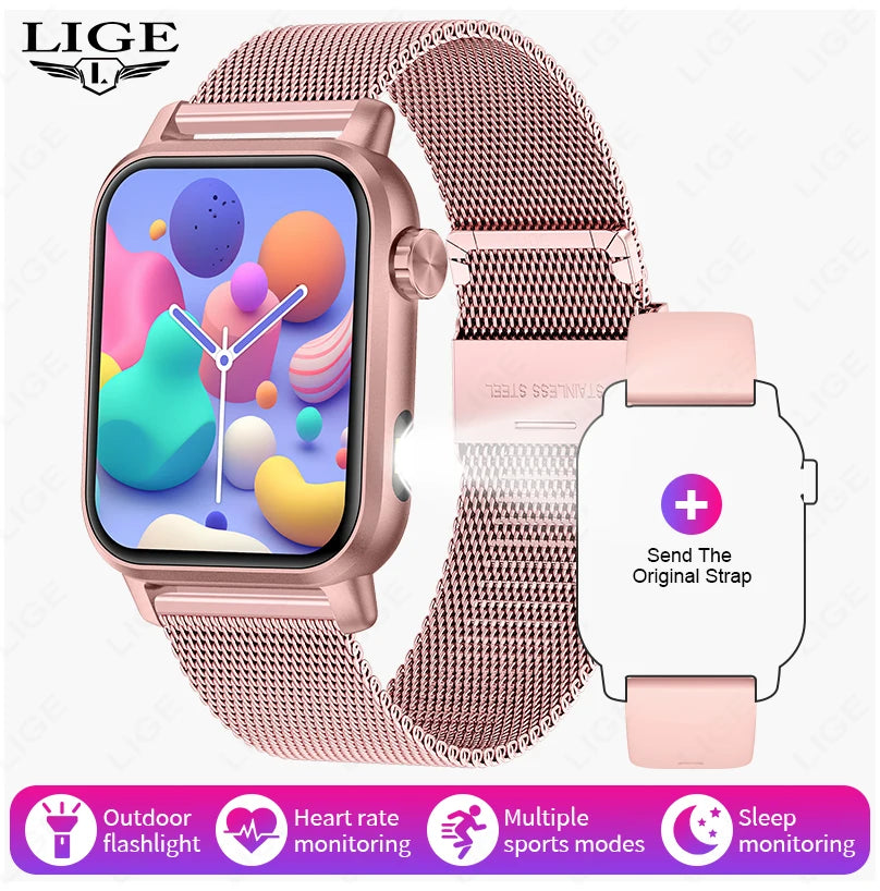 LIGE Sport Smart Uhr Männer 1,85 "LED Taschenlampe IP68 Wasserdichte Bluetooth Anruf Smartwatch Herzfrequenz Blut Sauerstoff Frauen Uhren