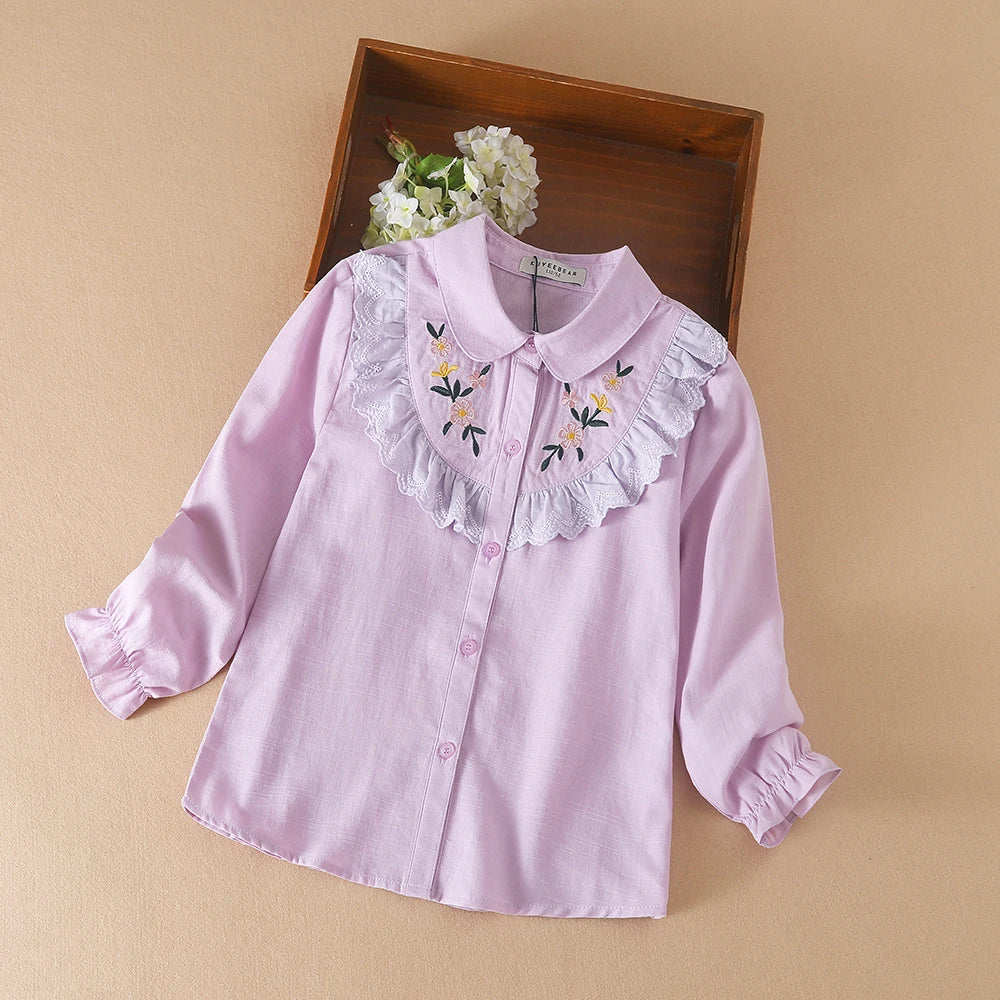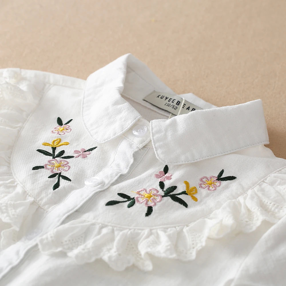 Mädchen Blusen 100% Baumwolle weiß Langarm Herbst Kinder kleidung für 8 10 12 Jahre Stickerei Tops Mädchen Schul hemden