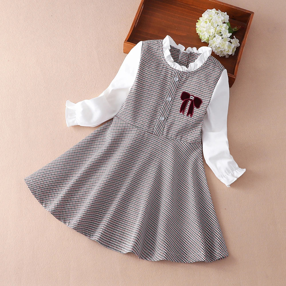 Mädchen Prinzessin Kleider Frühling Herbst lässig Kinder Langarm Plaid Kleidung 4-12 Jahre täglich Kinder Kleider
