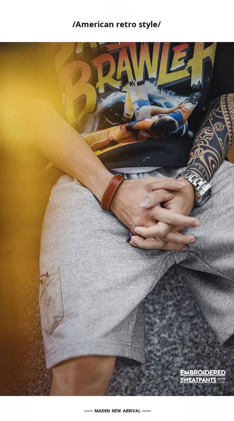 feature 8: Maden New Casual Heavyweight Gray Jogger Shorts Men's Summer Knit Basketball Shorts Elastic Waist Breathable Running Bottoms