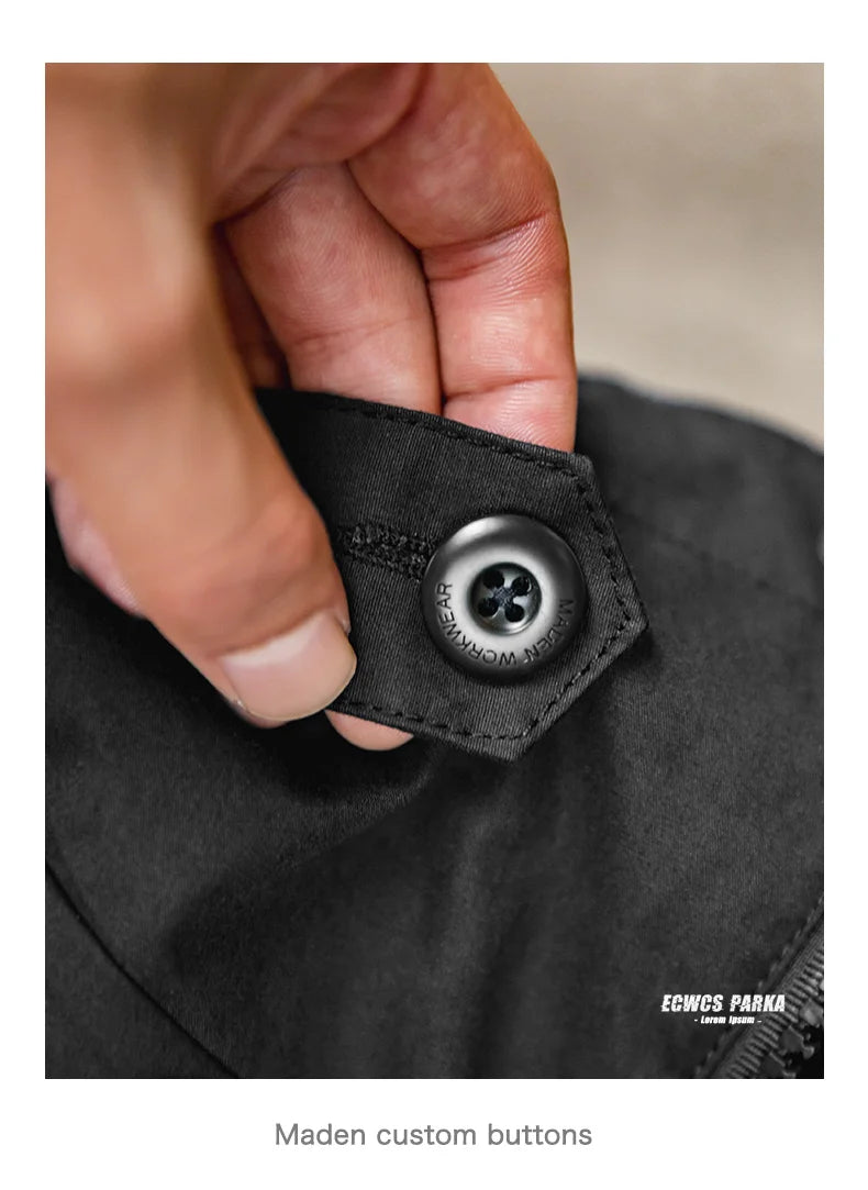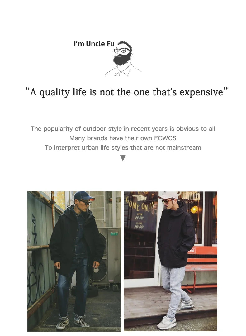 Herren Outdoor Sport Kapuzenjacke Windjacke Motorrad Stil Mittellanger Mantel Taschen Herbst