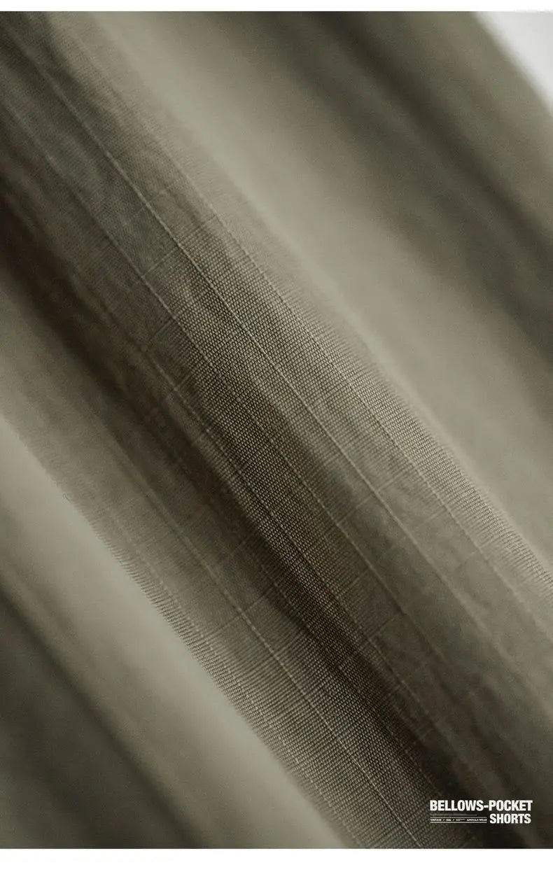 feature 8: Maden Casual Green Pocket Shorts Men's Summer Lightweight Woven Straight Leg Shorts Elastic Waist Retro Street Versatile Bottoms