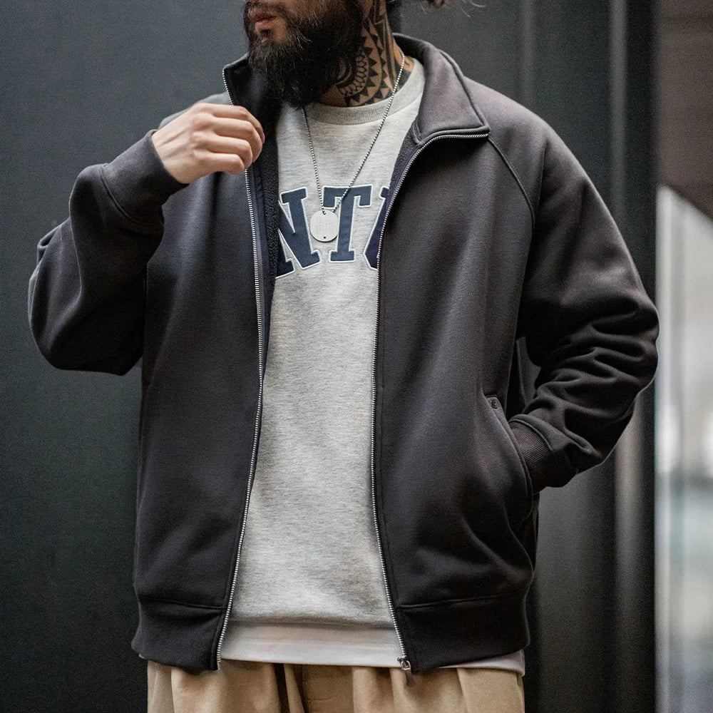Herren Strickjacke Polarfleece Stehkragen Sport Reißverschlussjacke warmer Mantel