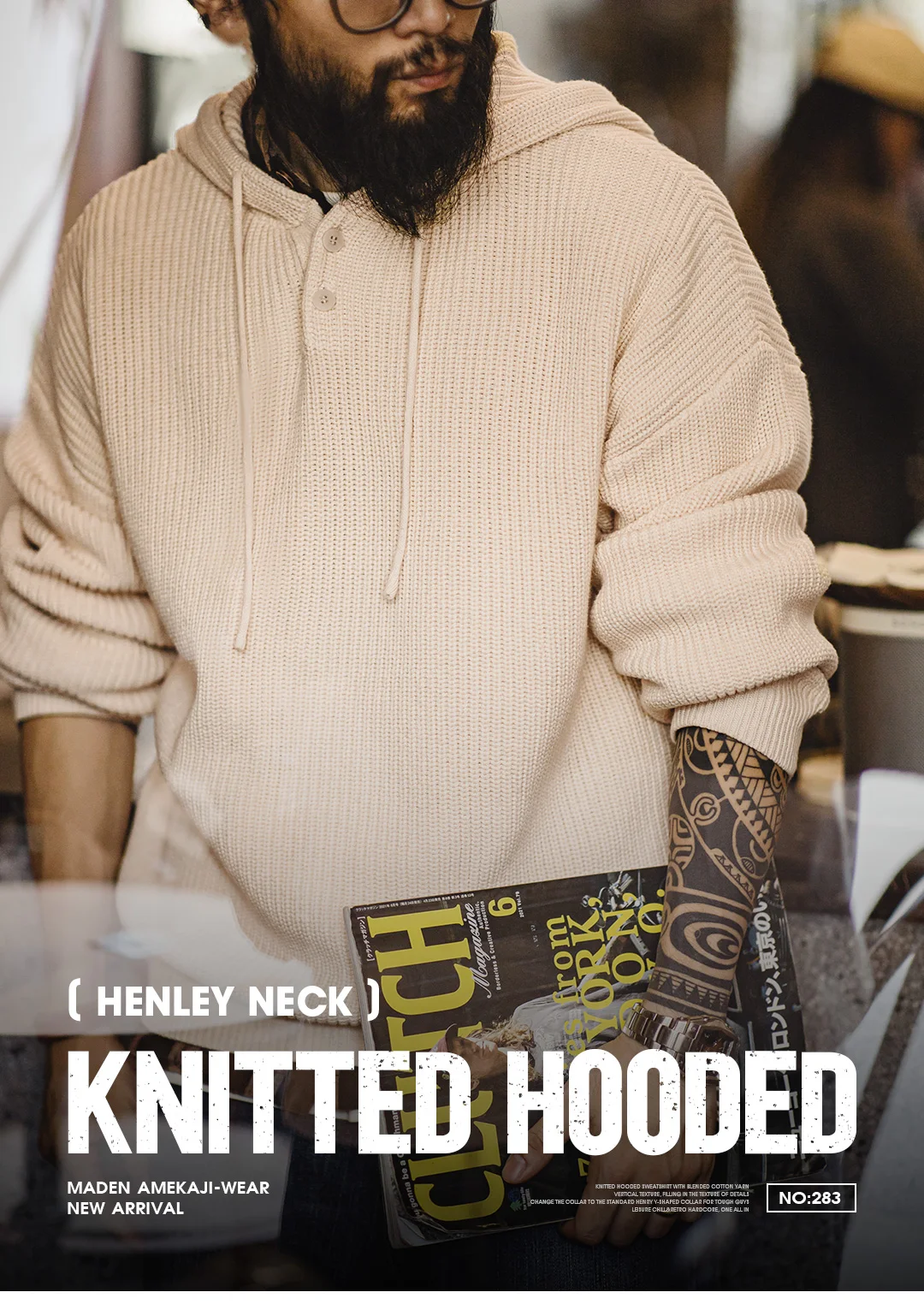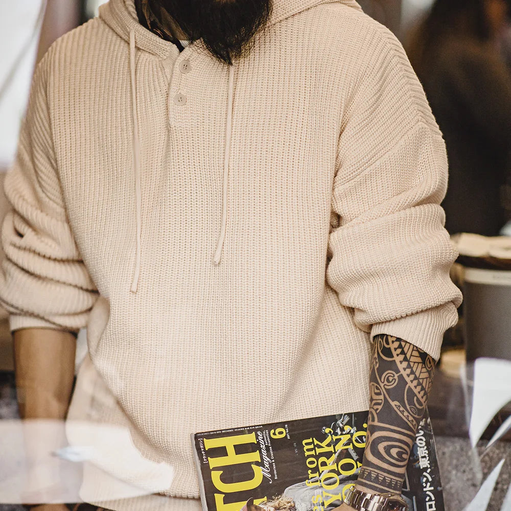 Herren Pullover aus Strick mit Henley-Kragen und Kapuze für Herbst und Winter