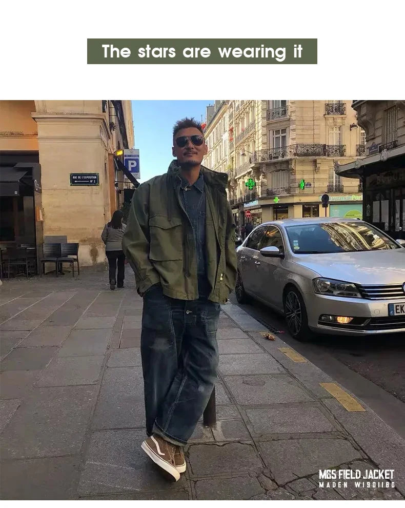 6.Geeignet für Frühling und Herbst.Kann mit einem T-Shirt oder Kapuzenpullover im Inneren kombiniert werden.Für Unterteile sind Cargohosen oder Jeans eine gute Wahl.Was das Zubehör betrifft, ist eine geölte Leinentasche eine tolle Option.