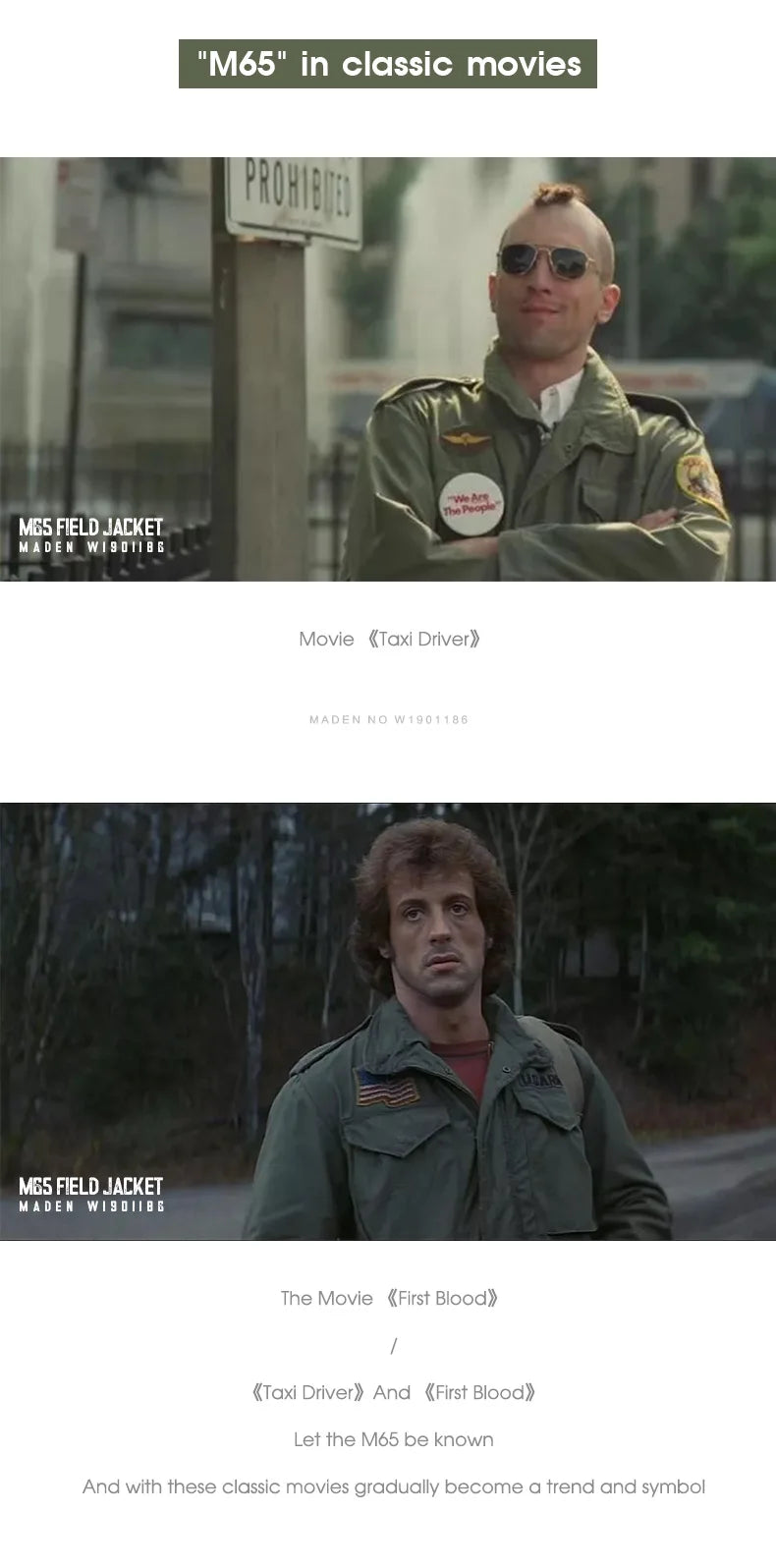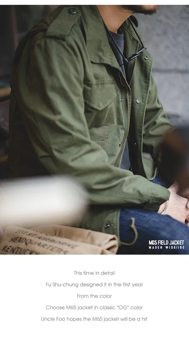 1.M65 Feldjacke, hergestellt aus 100 % Baumwolle mit weichem Stoff.