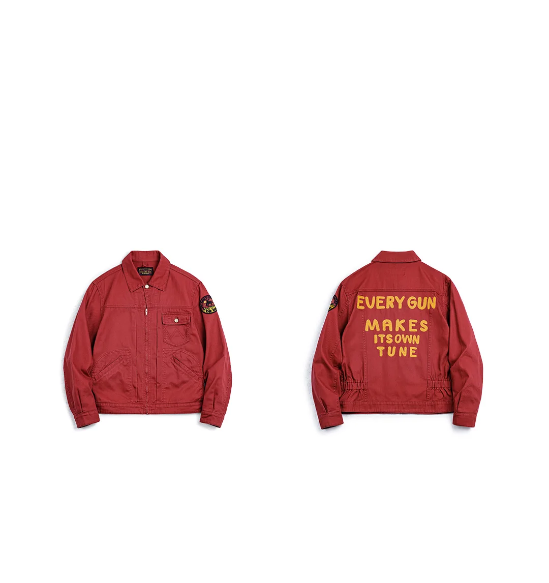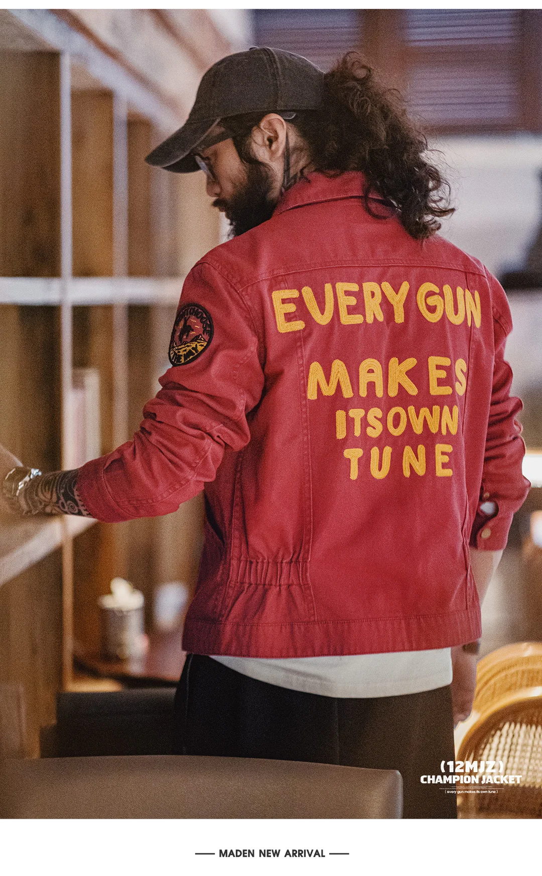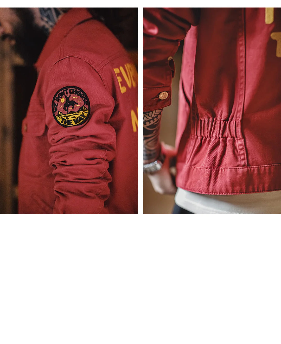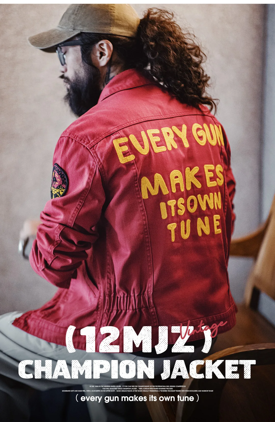 Herren Jacke Bestickte Slim-Fit Canvas Revers Mantel Zip-Up Casual