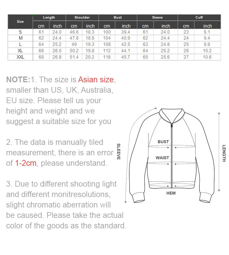 1.Die Größe ist eine asiatische Größe, kleiner als die US-/UK-/EU-/Australien-Größe. Wenn Sie sich nicht sicher sind, teilen Sie uns bitte Ihre Größe und Ihr Gewicht mit und wir schlagen Ihnen eine passende Größe vor.