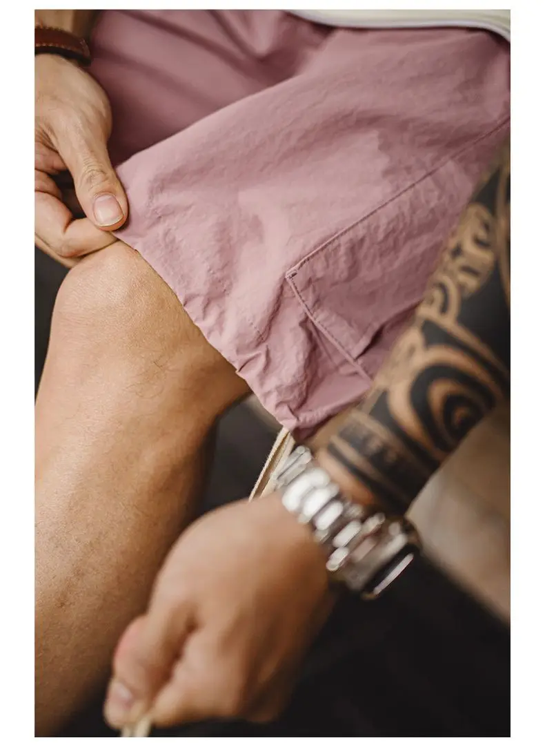 feature 7: Maden Outdoor Quick-Dry Pink Cargo Shorts Men's Summer Lightweight Woven Elastic Waist Shorts Loose Fit Straight Bottoms for Sports