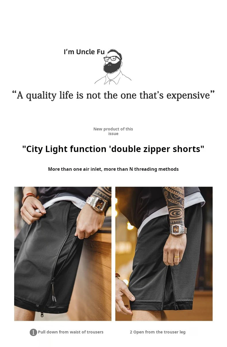 feature 8: Maden Outdoor Double Zippers Shorts Men's Summer Breathable Running Sport Shorts Lightweight Quick-Dry Training Street Bottoms