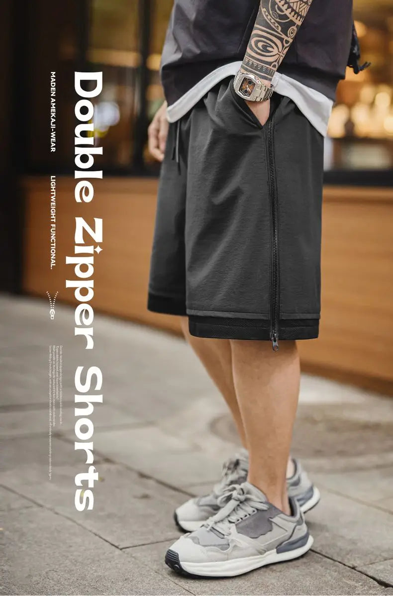 Herren Outdoor-Shorts mit doppelten Reißverschlüssen für Sommer-Laufsport