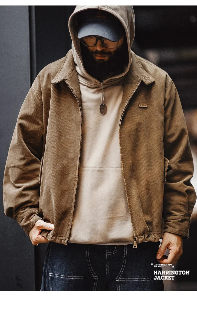 Herren Retro Cord Jacke mit Stehkragen und lässigen Taschen für Herbst