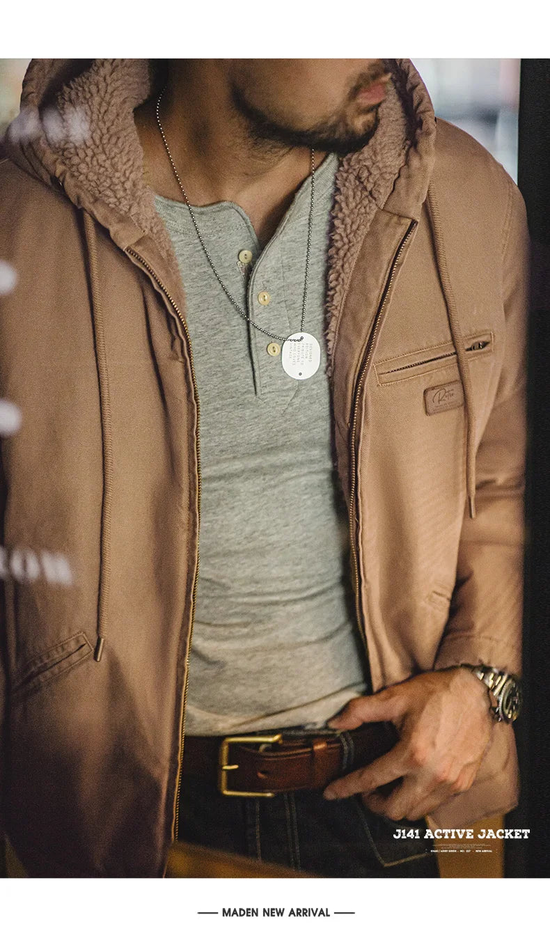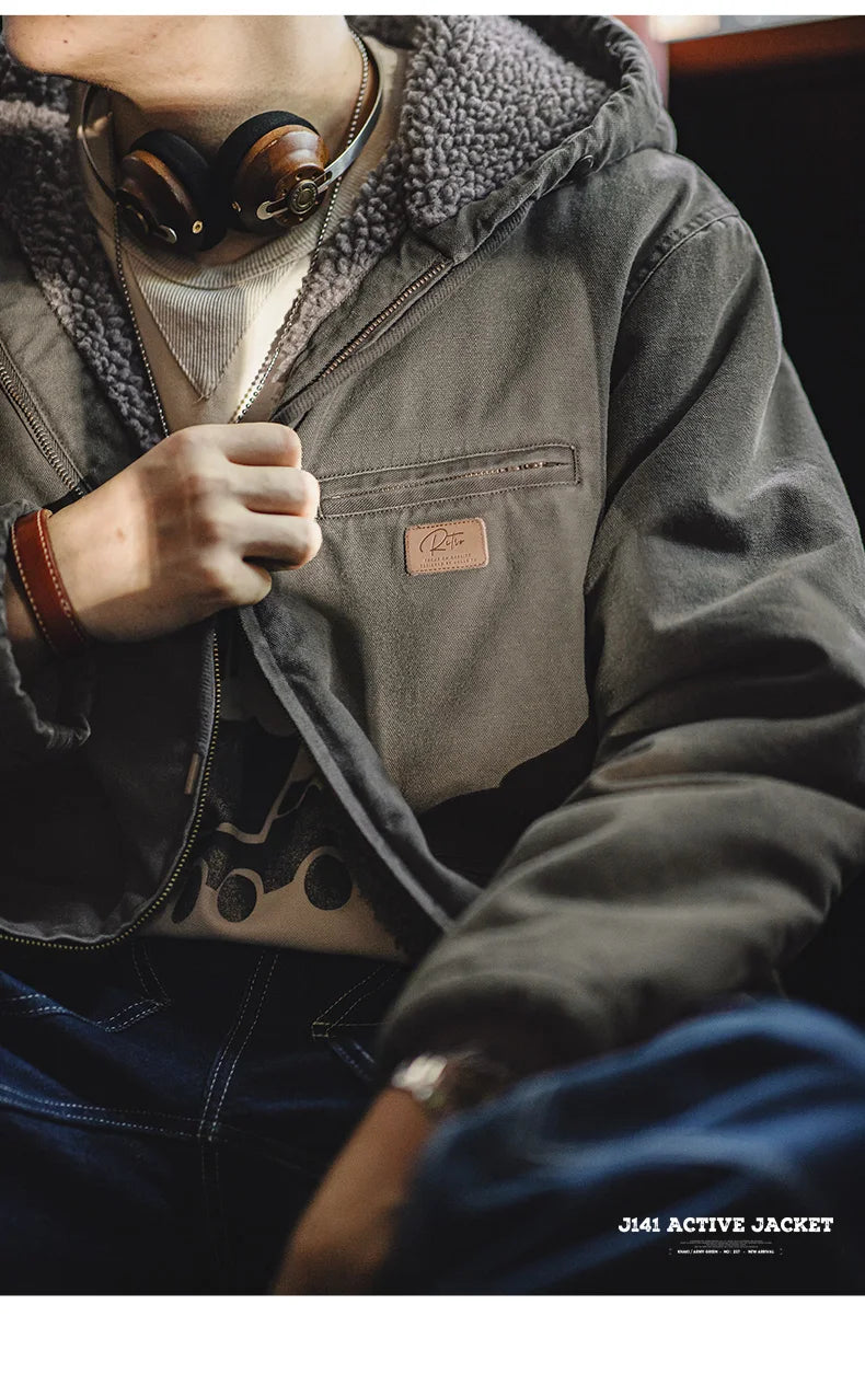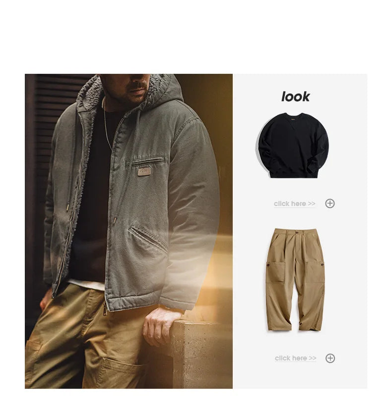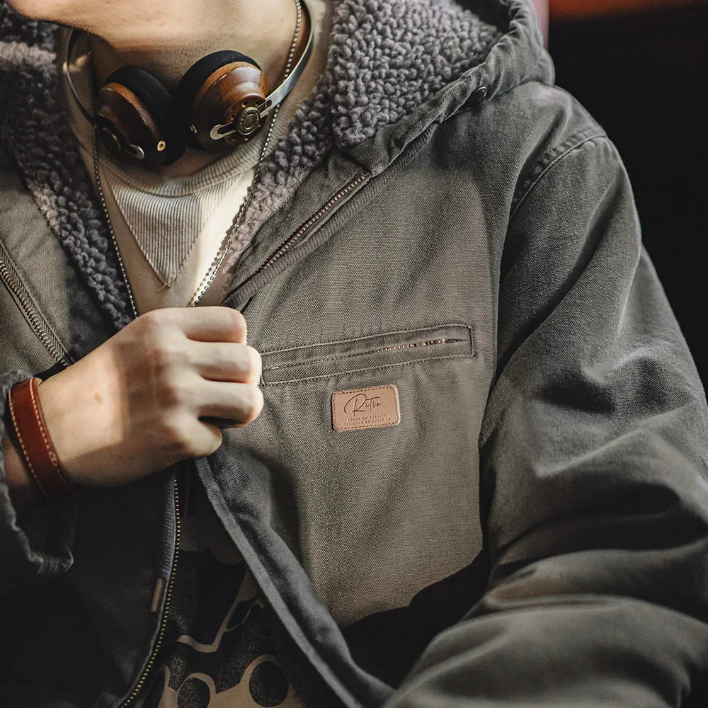 Herren Kapuzenjacke Einfarbig Sherpa-Fleece Baumwolle Taschen