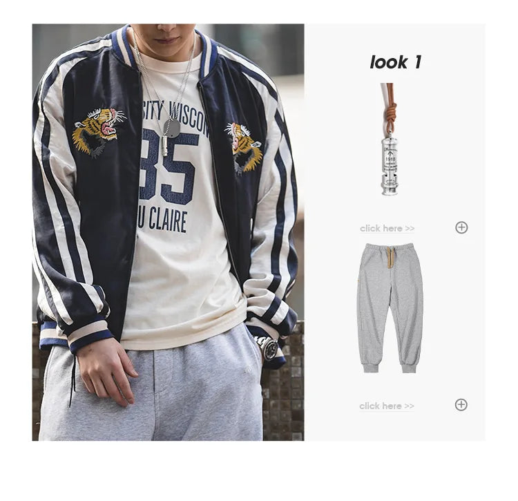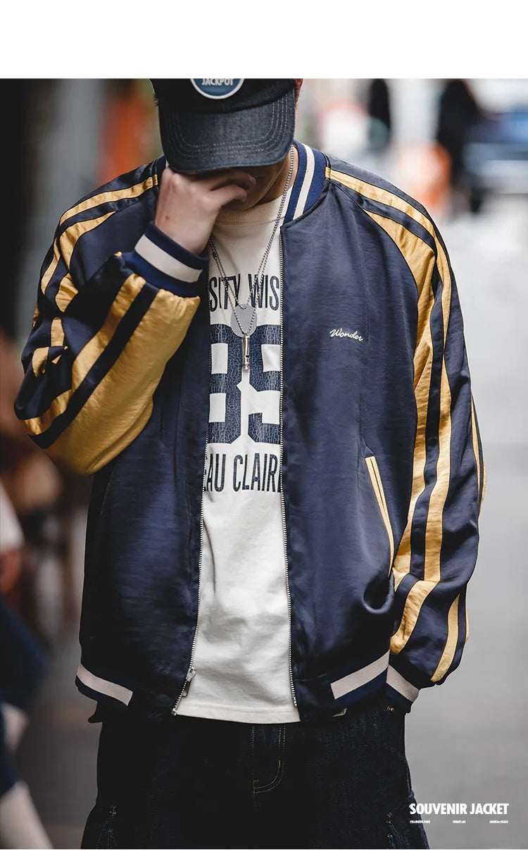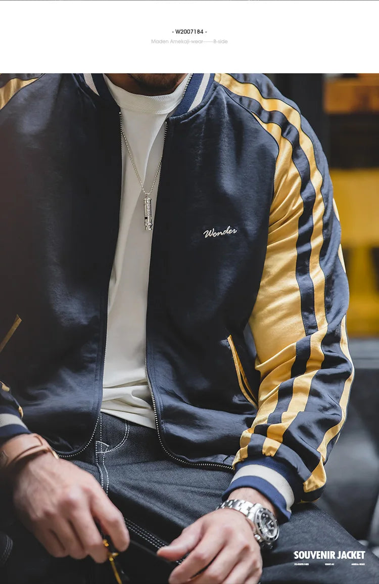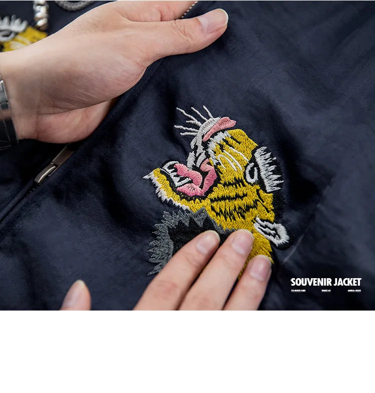 Herren Yokosuka Jacke Retro Reversible Tiger bestickte Patchwork-Outwear