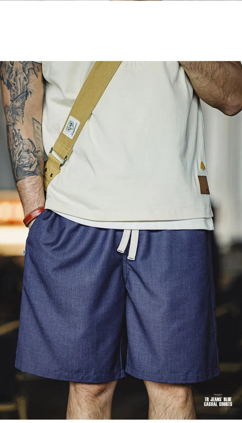 Herren Shorts im Retro-Stil aus gewaschenem Denim mit elastischem Bund und Kordelzug
