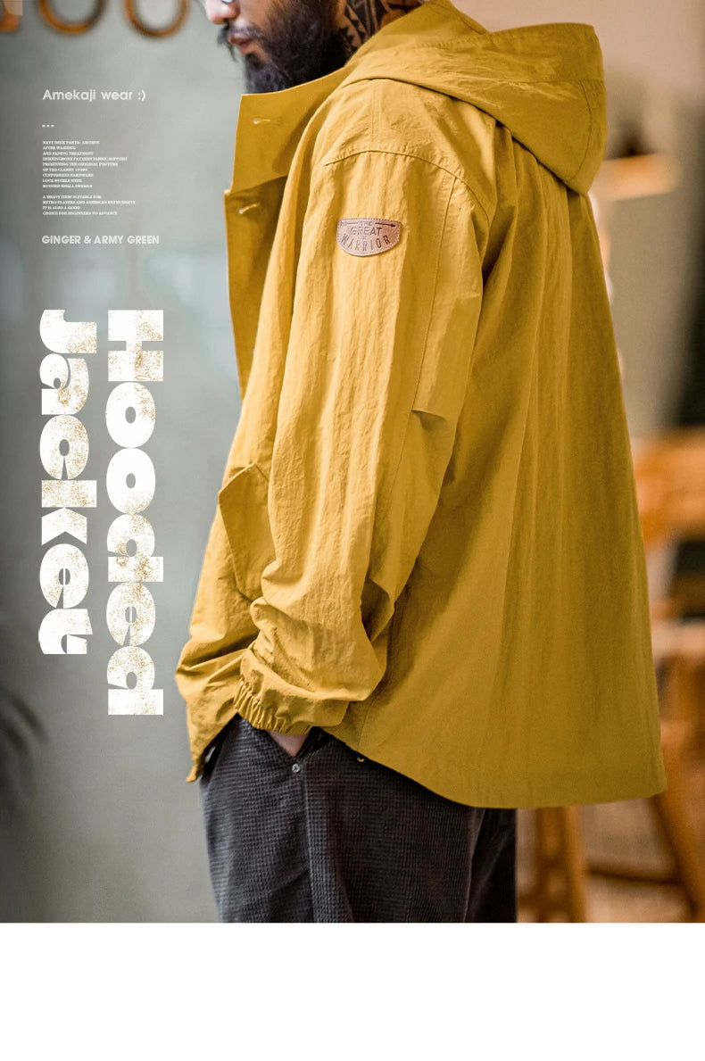Herren Kapuzenjacke Vintage Einfarbig Dünn Loose Taschen Einzel-Breasted Coat