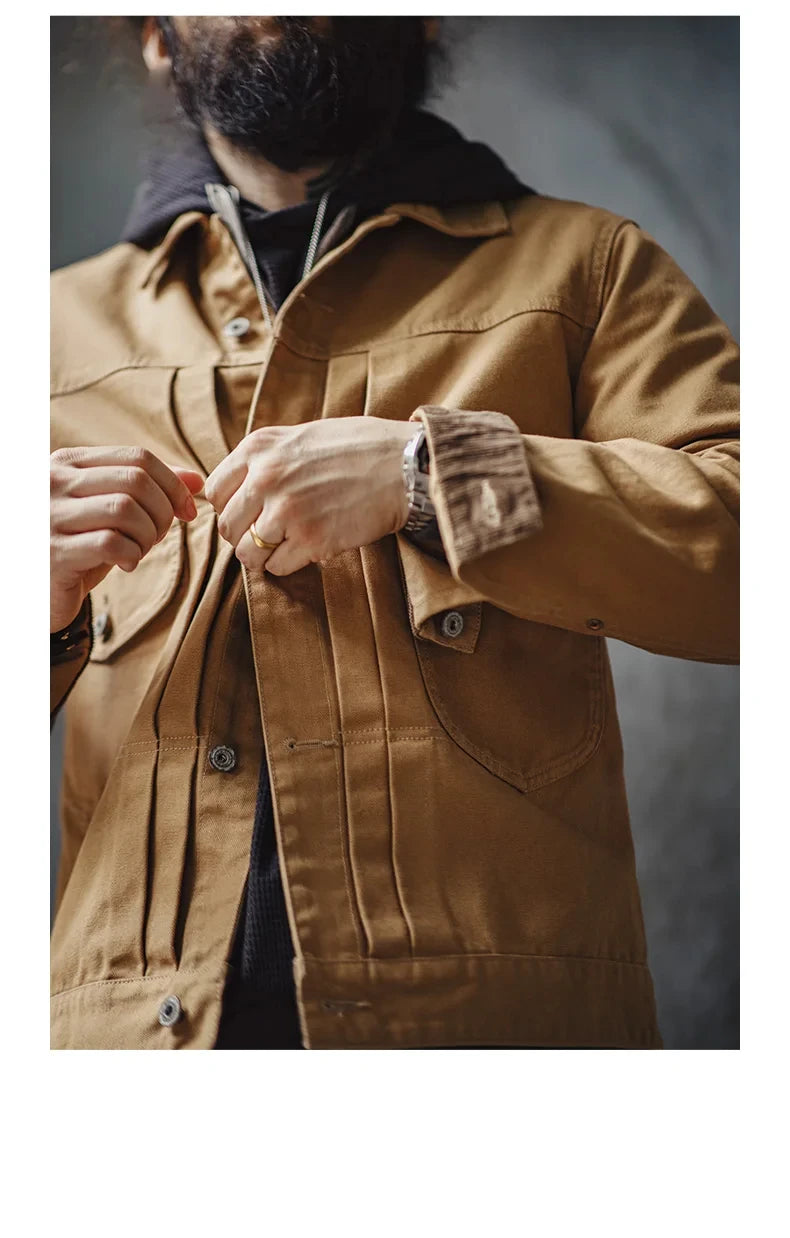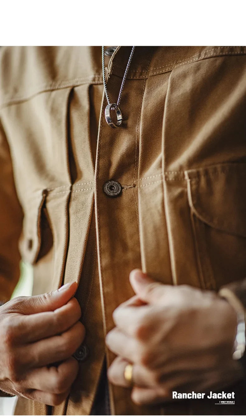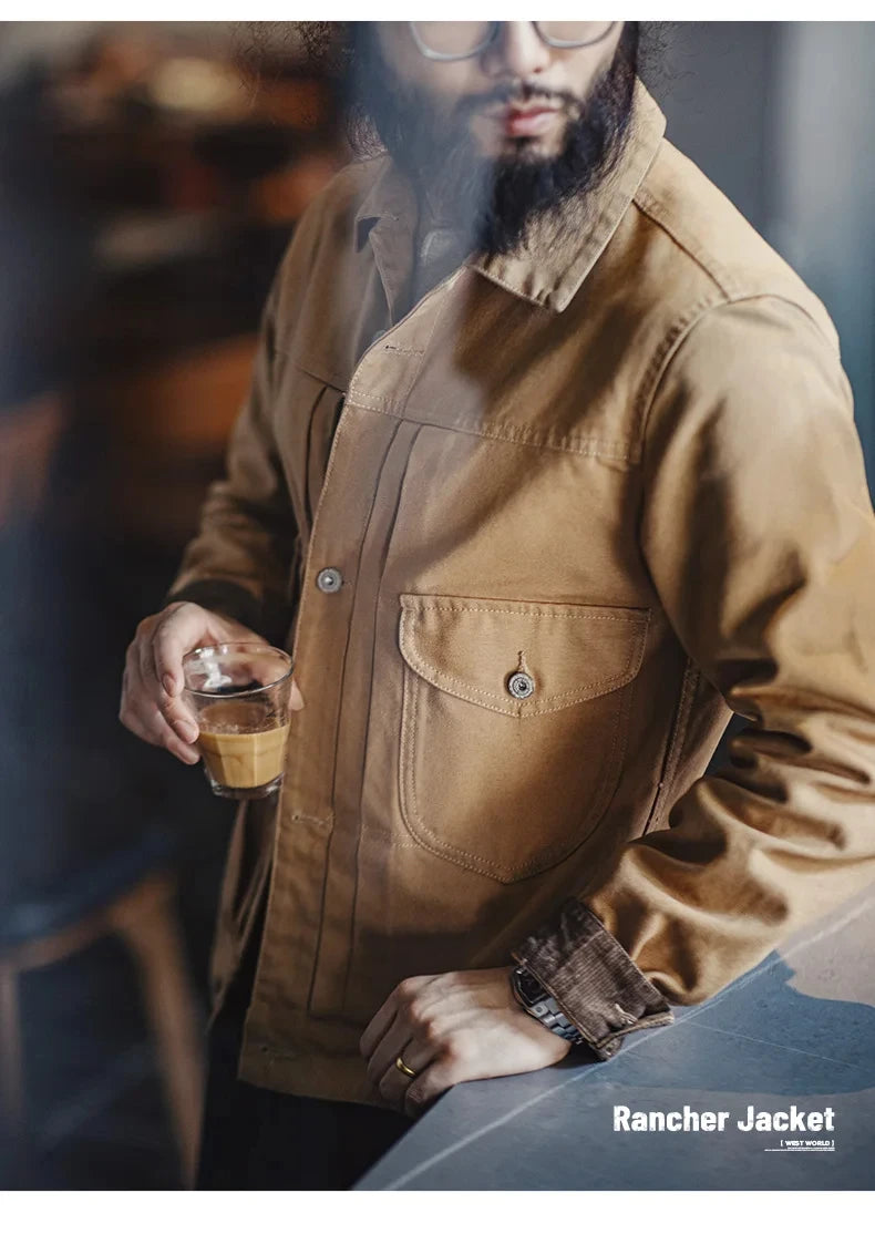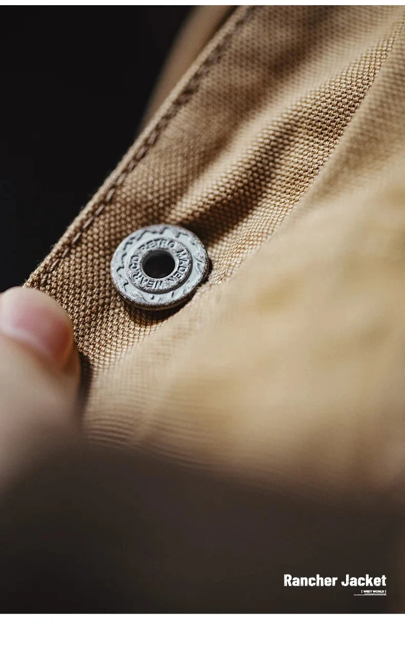 Herren Jeansjacke Vintage schwere Canvas Rancherjacken mit Kragen und Taschen