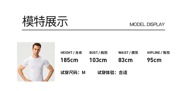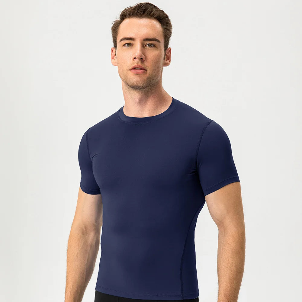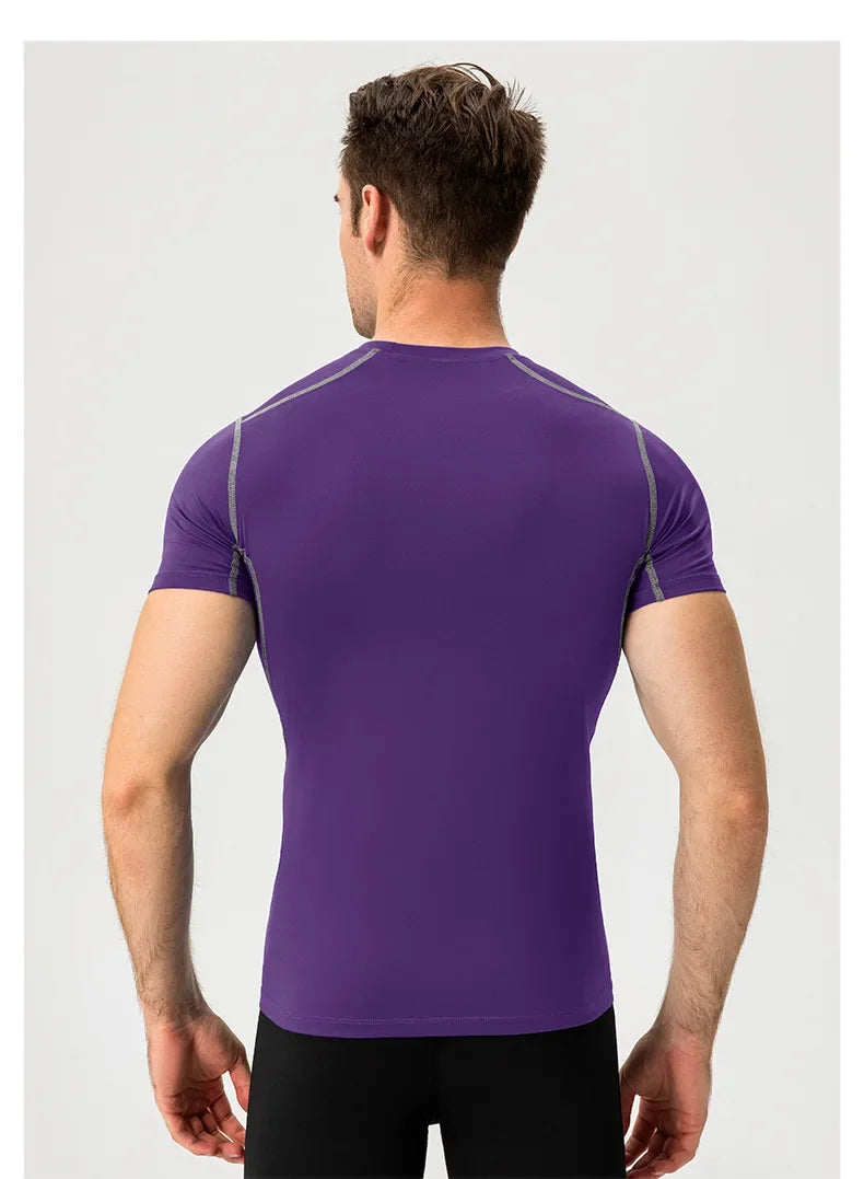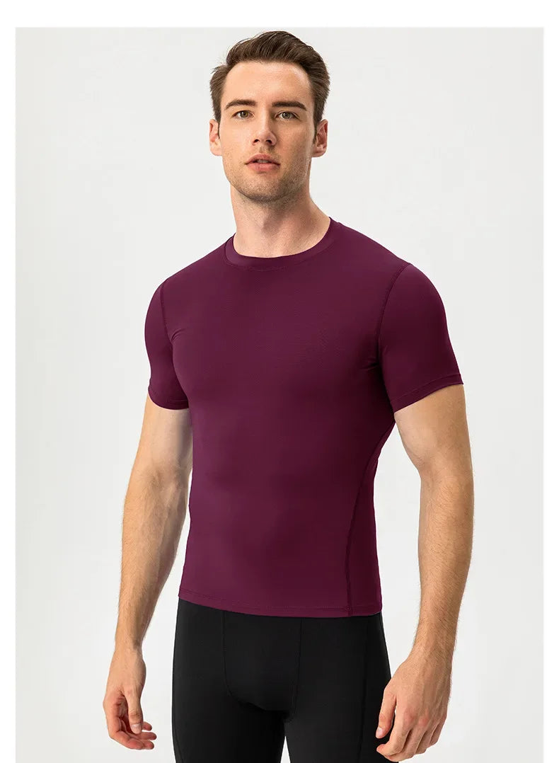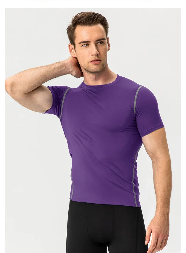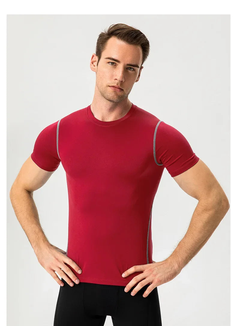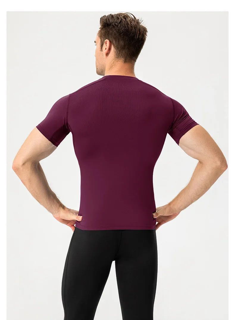 Eng anliegendes Herren-Fitness-Trainingsset mit kurzen Ärmeln – elastisch und schnelltrocknend, ideal für Sport und Laufen.