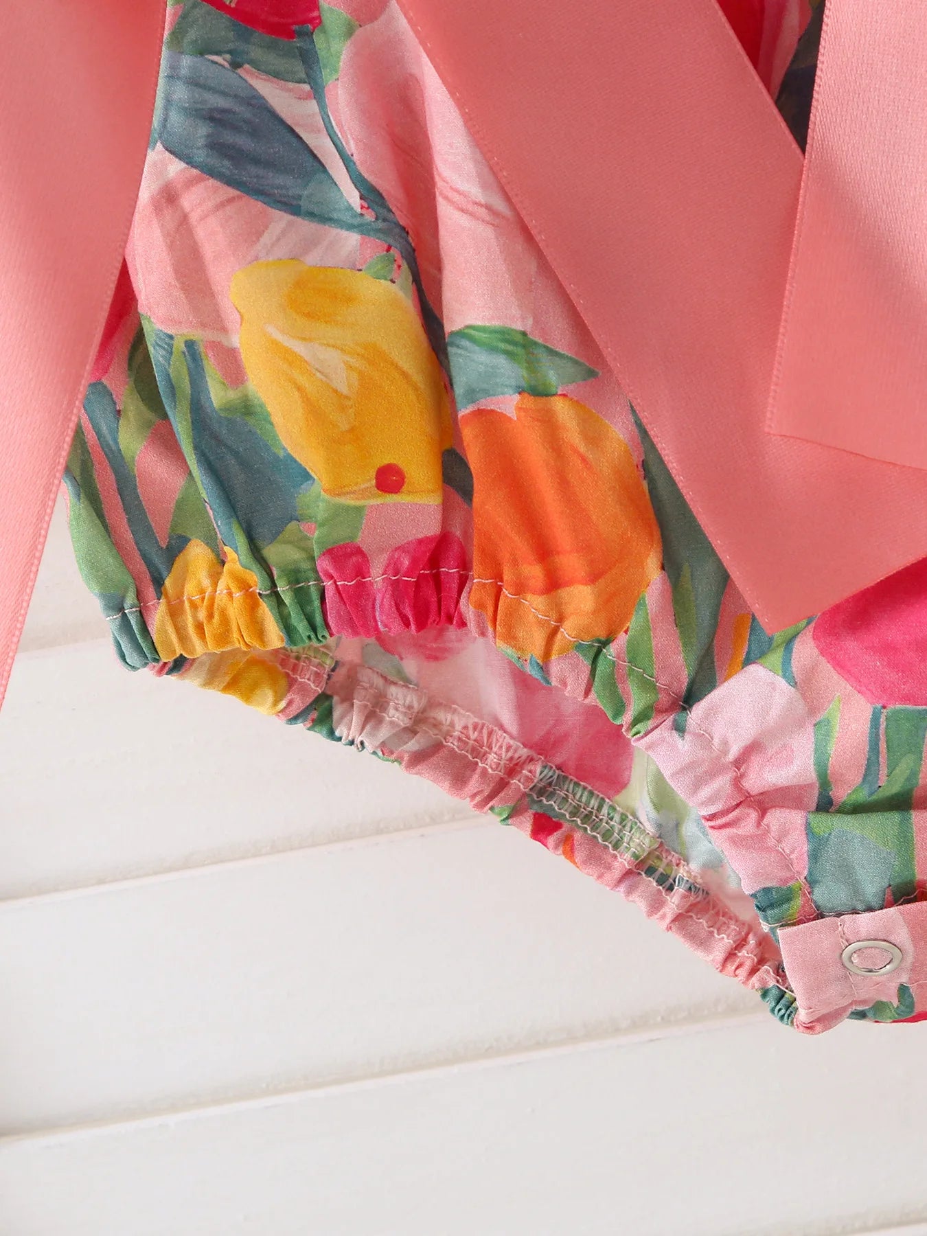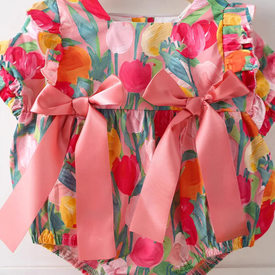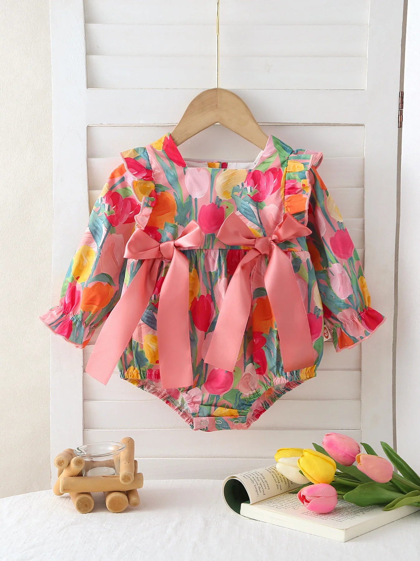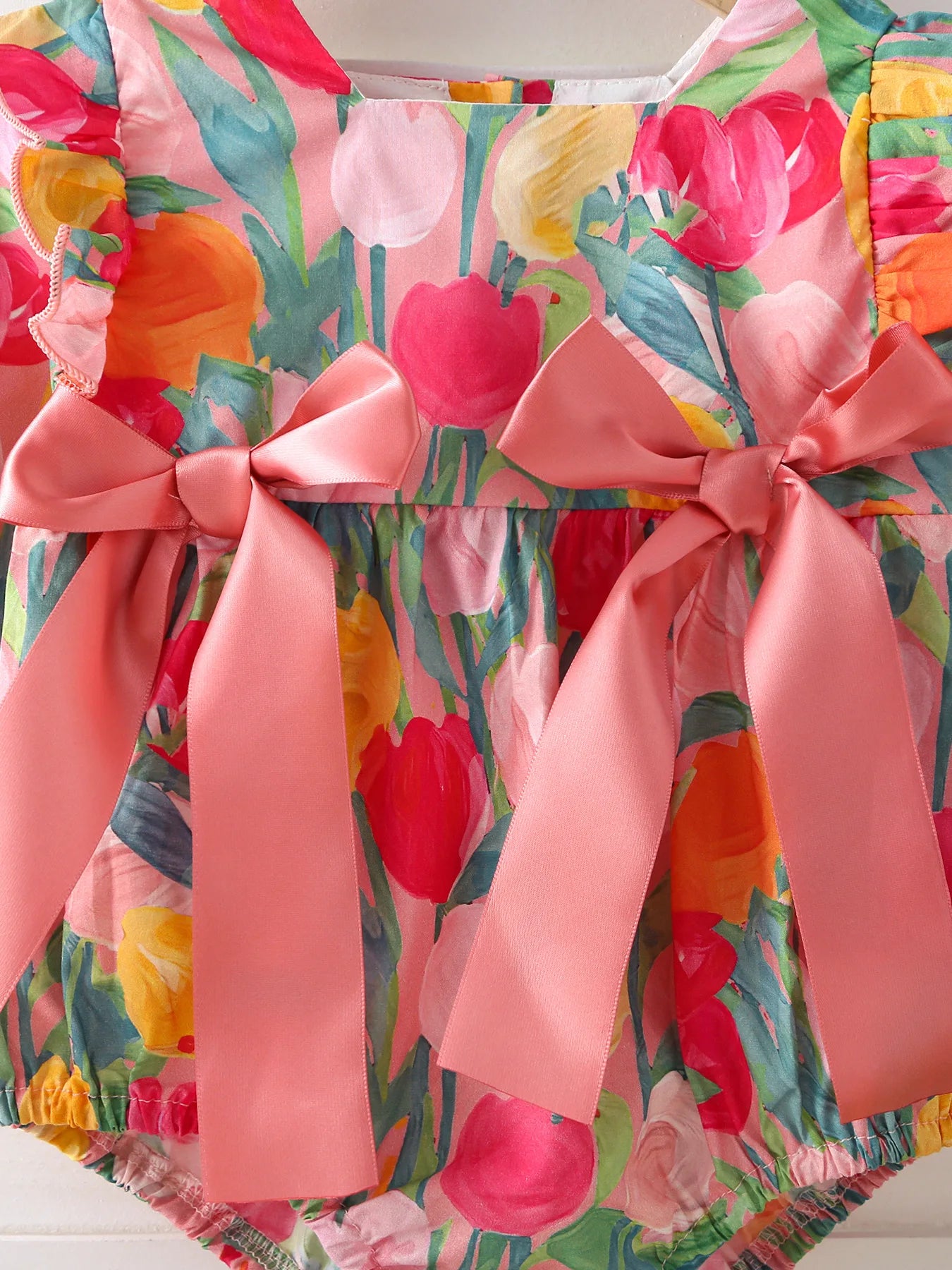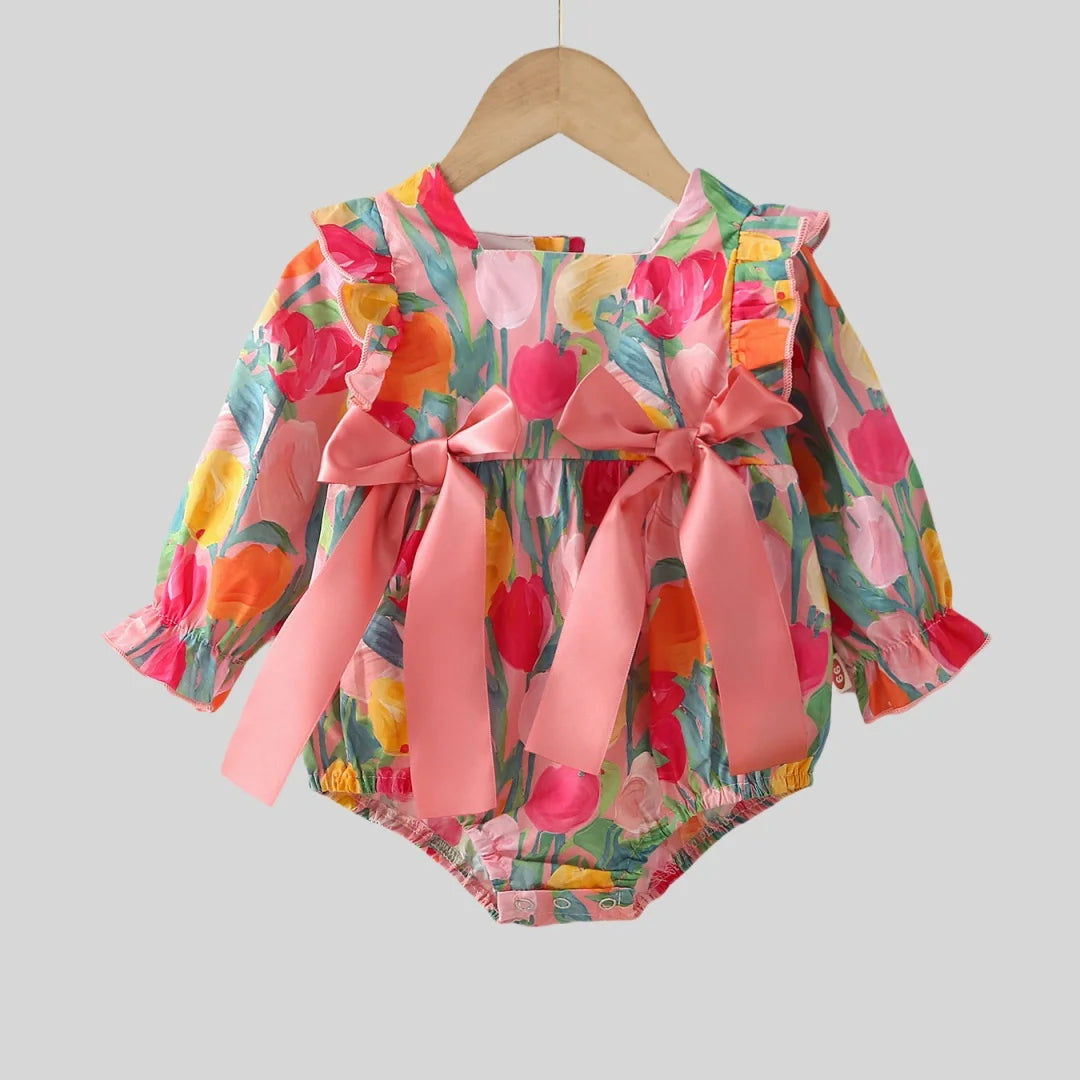 Mädchen Body mit Doppelschleife und Blumendruck für Babys von 0-2 Jahren