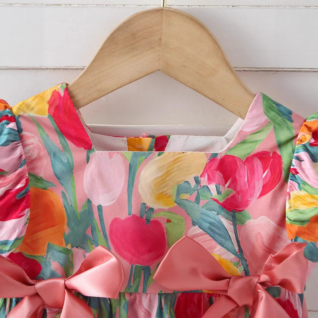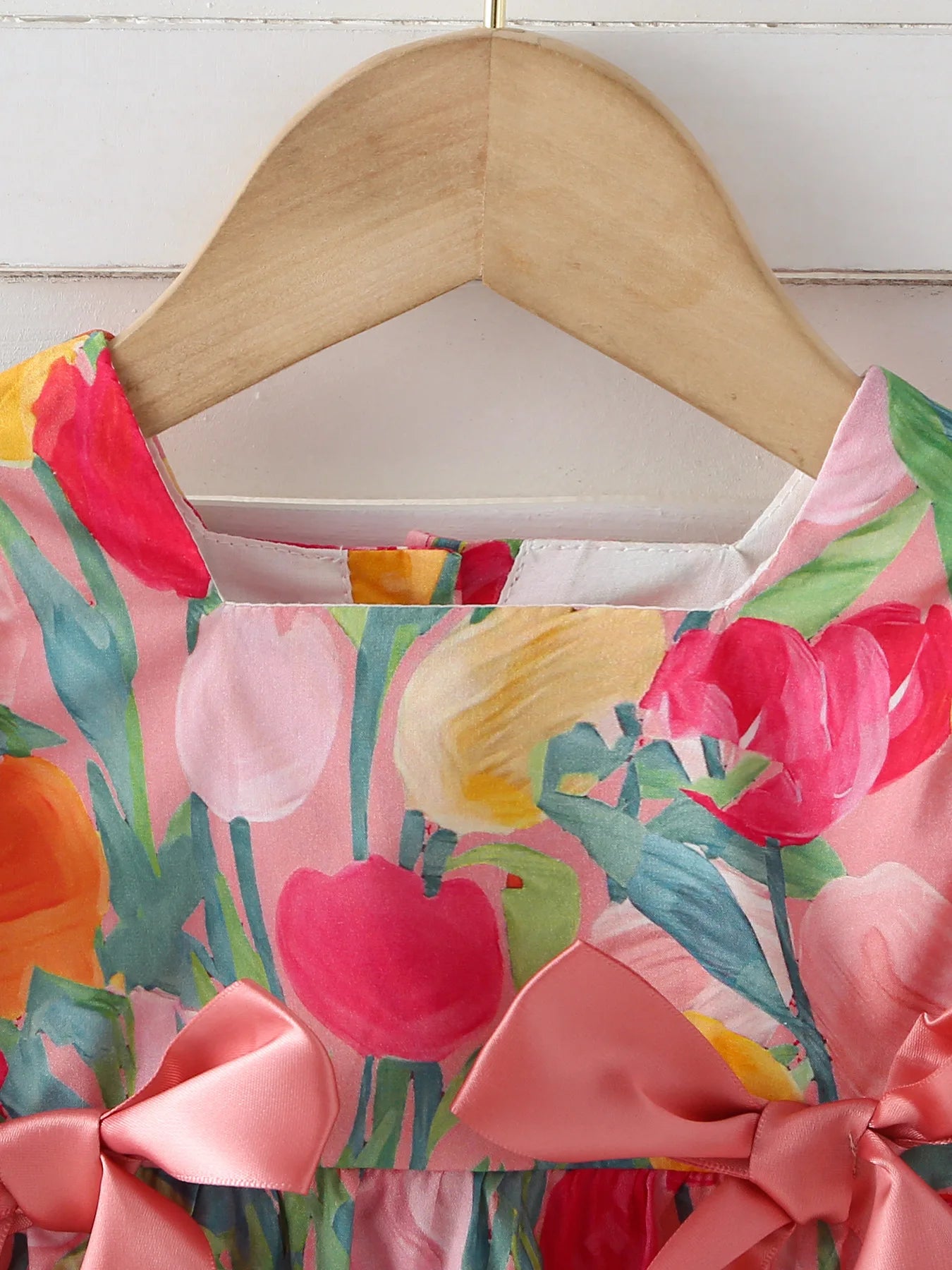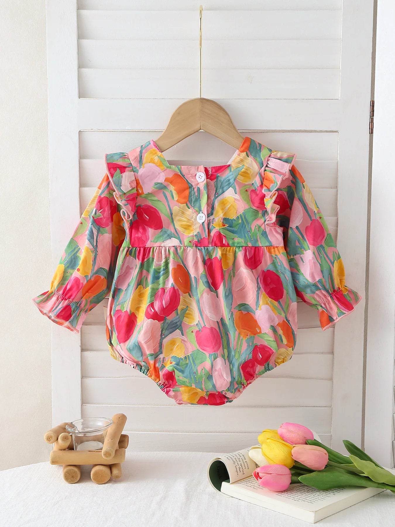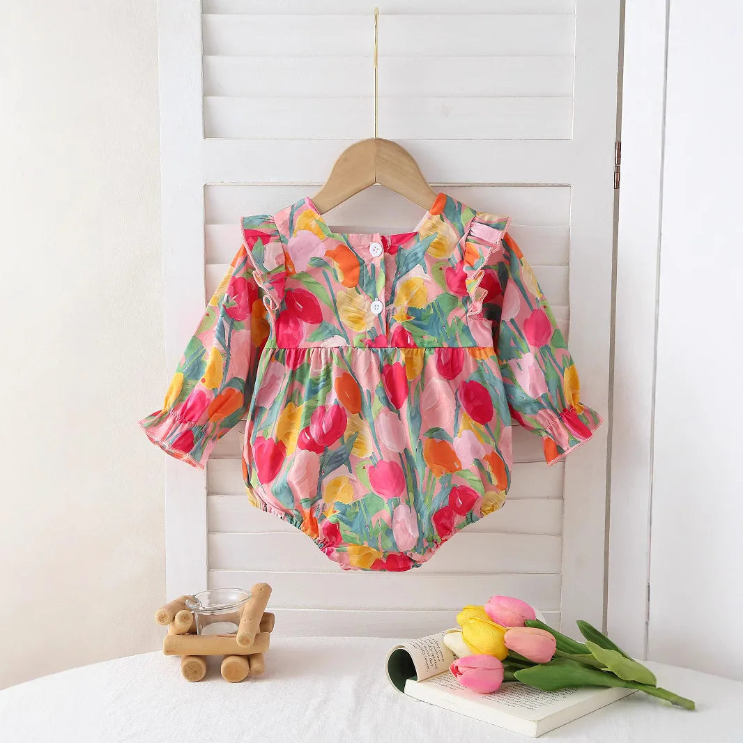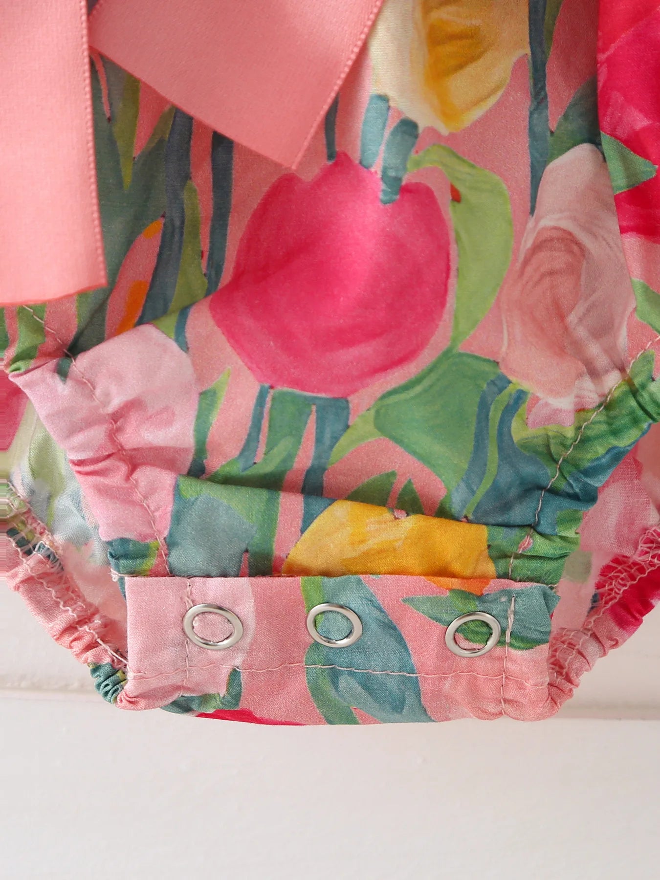 Mädchen Body mit Doppelschleife und Blumendruck für Babys von 0-2 Jahren