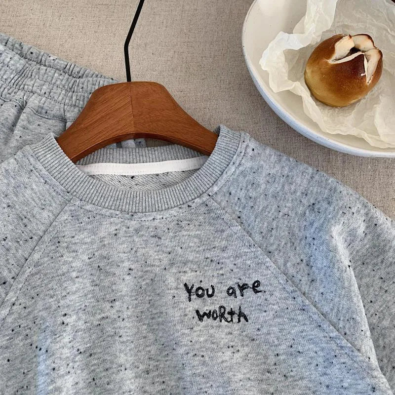3.**Inspirationslogan**: Der Slogan „Sie sind es wert“ auf dem Sweatshirt sorgt für eine positive und bedeutungsvolle Note und ist Eltern ansprechend, die gerne positive Nachrichten hinterlassen.